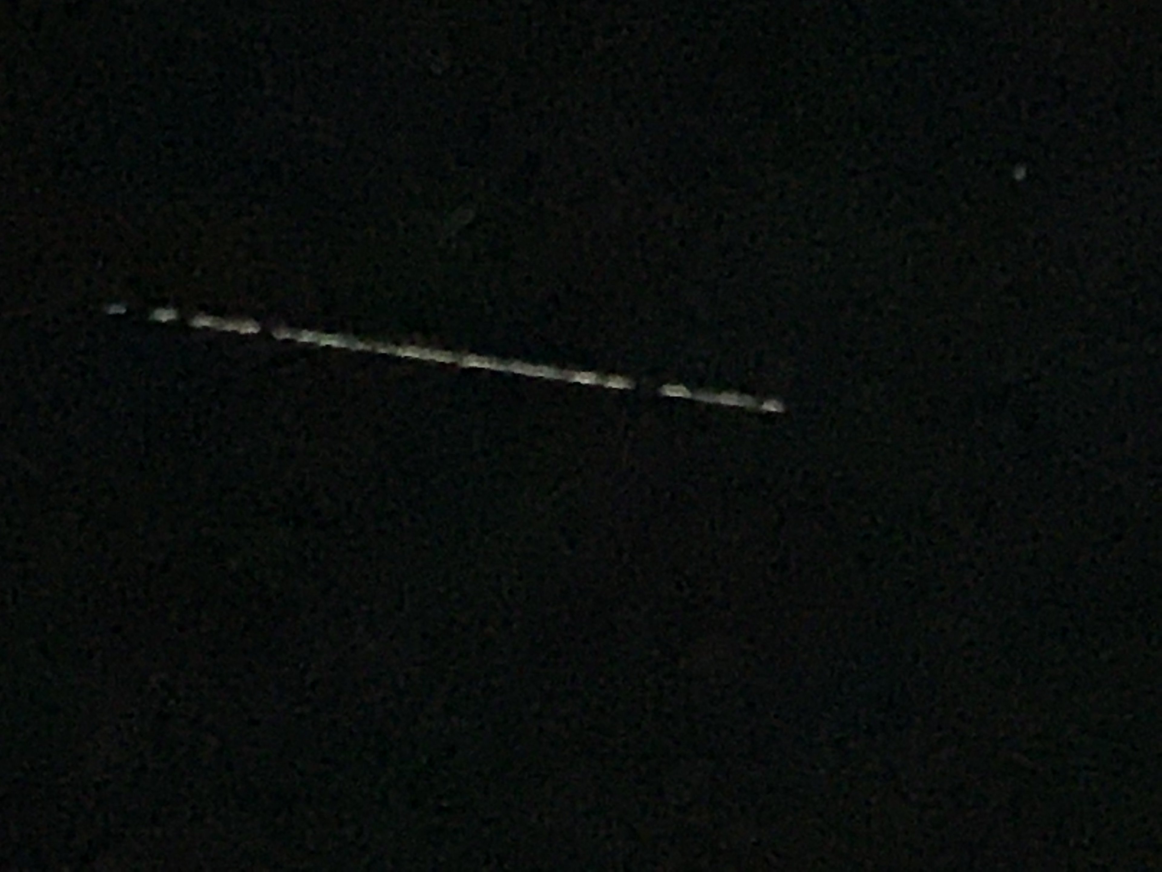 Von der Leuchtkraft und Geschwindigkeit her hätte ich gesagt: Satelliten- aber geich ca. 100 Stück in kurzem Abstand auf einer Bahn.