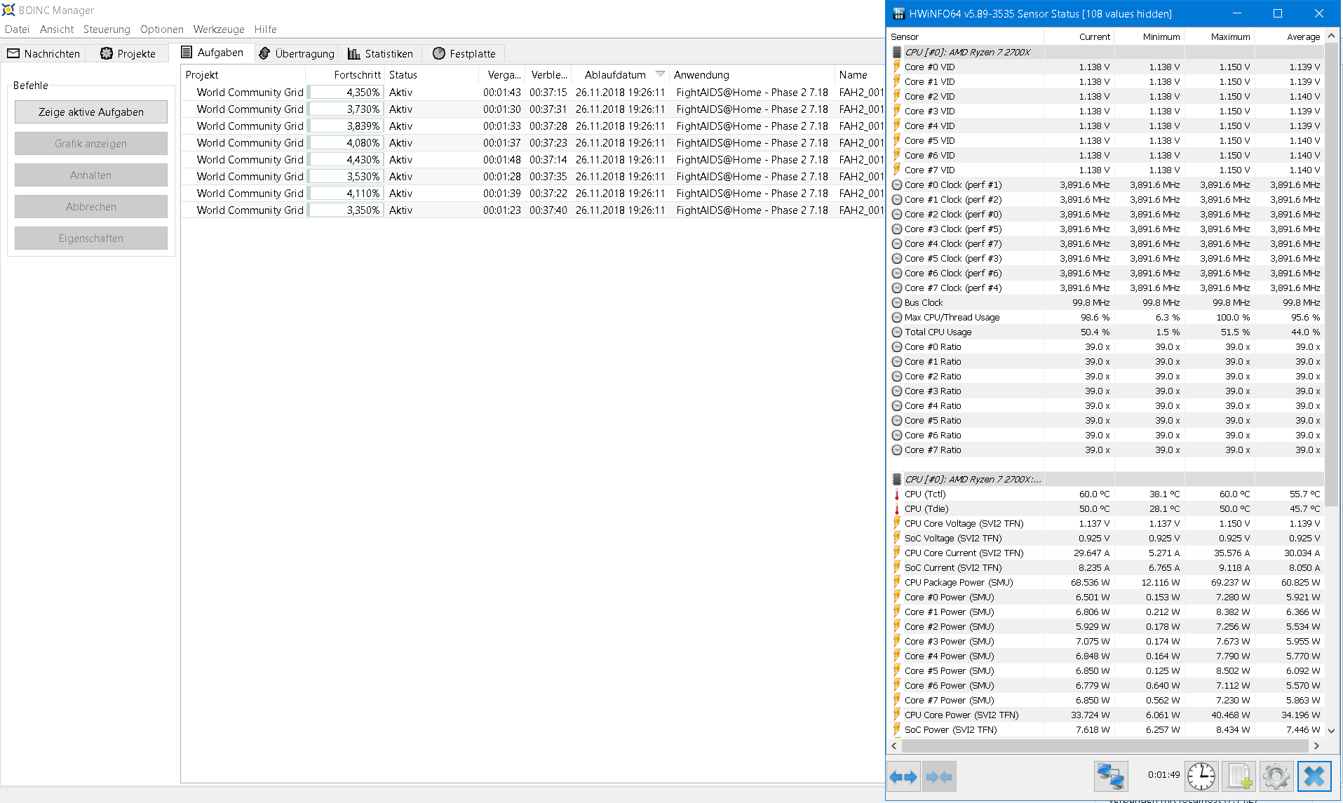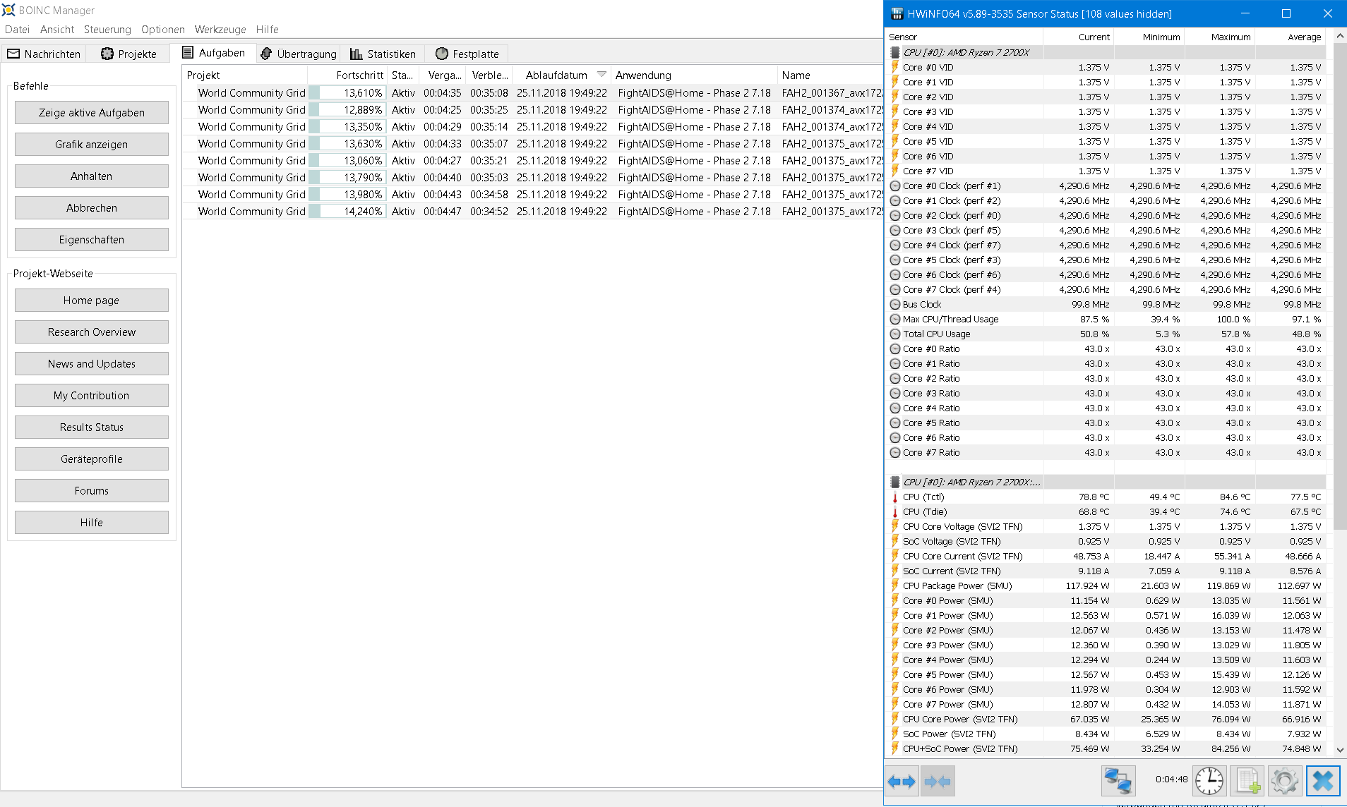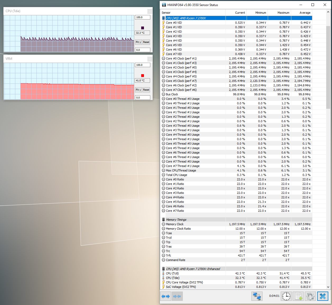 Energiesparplan ist im Moment bei Ryzen-Optimiert. (Min CPU Last auf 5% manuell runtergesetzt) RivaTuner SS läuft bei mir dauerhaft im Tray und zeigt mir damit auch dauerhaft die CPU Temp an. Dabei liegt der CPU-Einfluss von RSS bei unter 0,01%. Also so Idle wie eben realistisch ist. Trotzdem niemals unter 45 Grad.