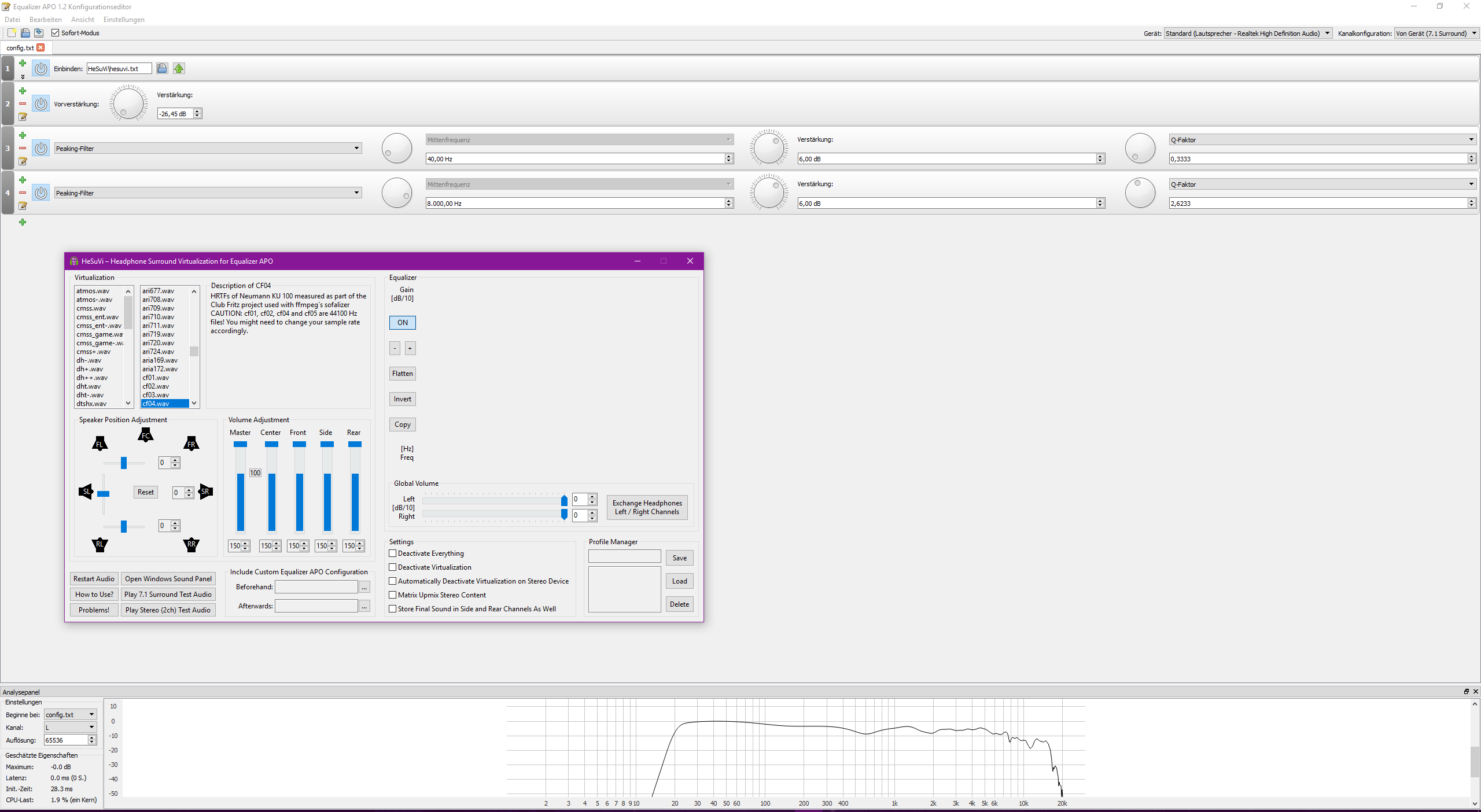 *Der Realiser nutzt streng genommen keine HRTF sondern eine BRIR/PRIR und hat ggÜ der Softwarelösung noch Headtracking.
