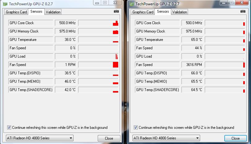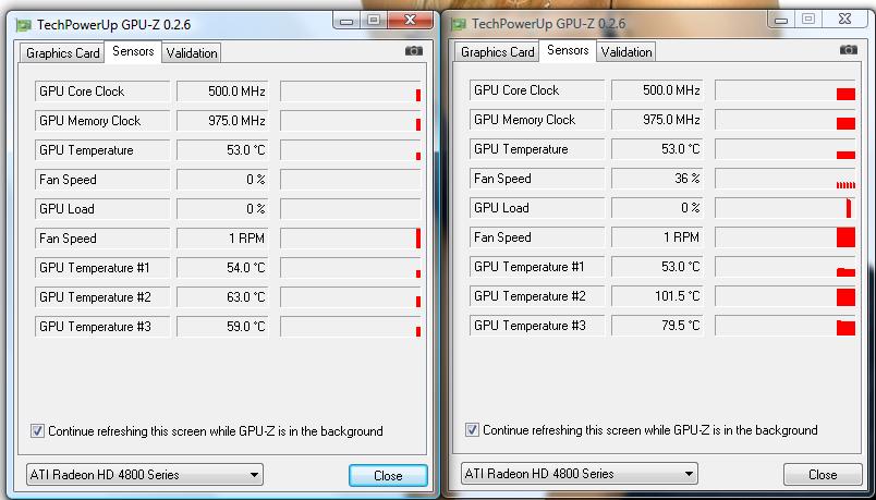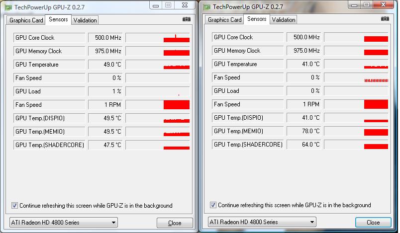 habe so eben auf meine HD 4850 GraKas nen Zalman verbaut. Die GPU wird schön gekühlt. doch die anderen Temps unterscheiden sich komplett. Komischerweise wird die untere Karte an anderen stellen viel wärmer, obwohl auch noch bei beiden Karten der Spannungswandler mit Passivkühlern gekühlt wird. Hat jemand ne idee was das sein könnte? Sensor?