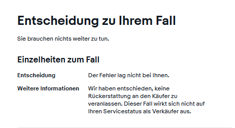 Später habe ich den Verkäufer noch Mal kontaktieren und wollte wissen was die Scheiße soll und warm er es nicht anständig kommuniziert hat, wenn ihm was nicht gefallen hat. Für eine Lösung bin ich immer offen. Aber es kam nichts mehr von ihm.