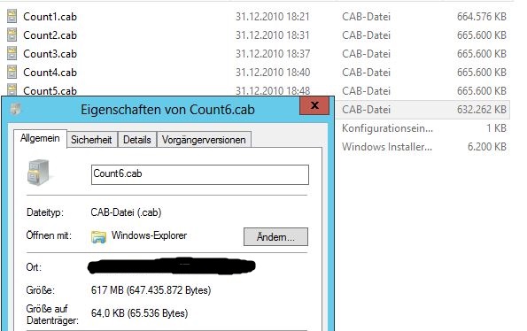 Wenn ich im Storage die Datei Eigenschaften stelle ich fest das die Größe z.b 617MB und Größe auf Datenträger 64Kb ist.