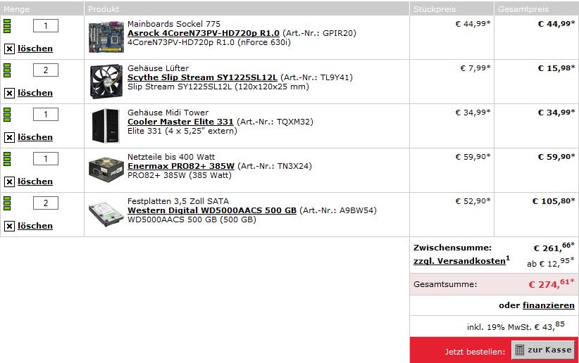 - CPU -> Intel E1400 (soll undervolted werden, pretested)