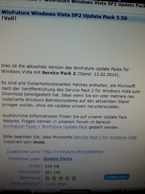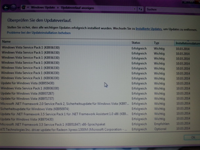 ich habe Vista Home Premium 32-bit auf einem Laptop, der mir zum Updaten überlassen wurde. Es wurden bisher keinerlei Updates seitens des Besitzers durchgeführt.