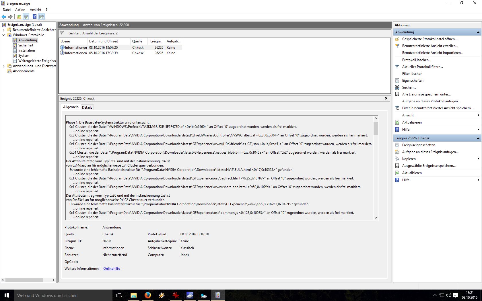 Die Logdatei davon bekomm ich hier nicht hochgeladen, hat 7 mb...