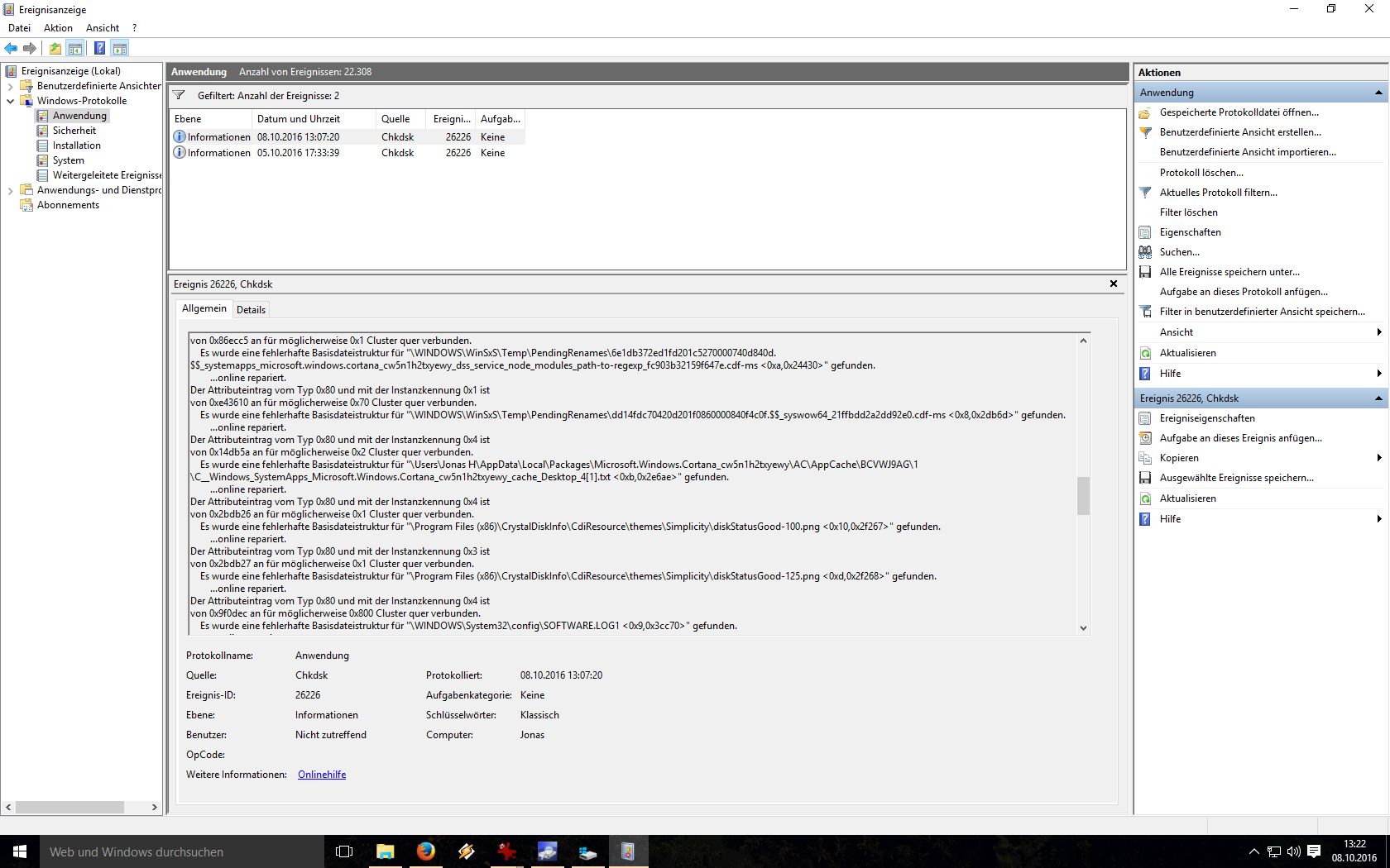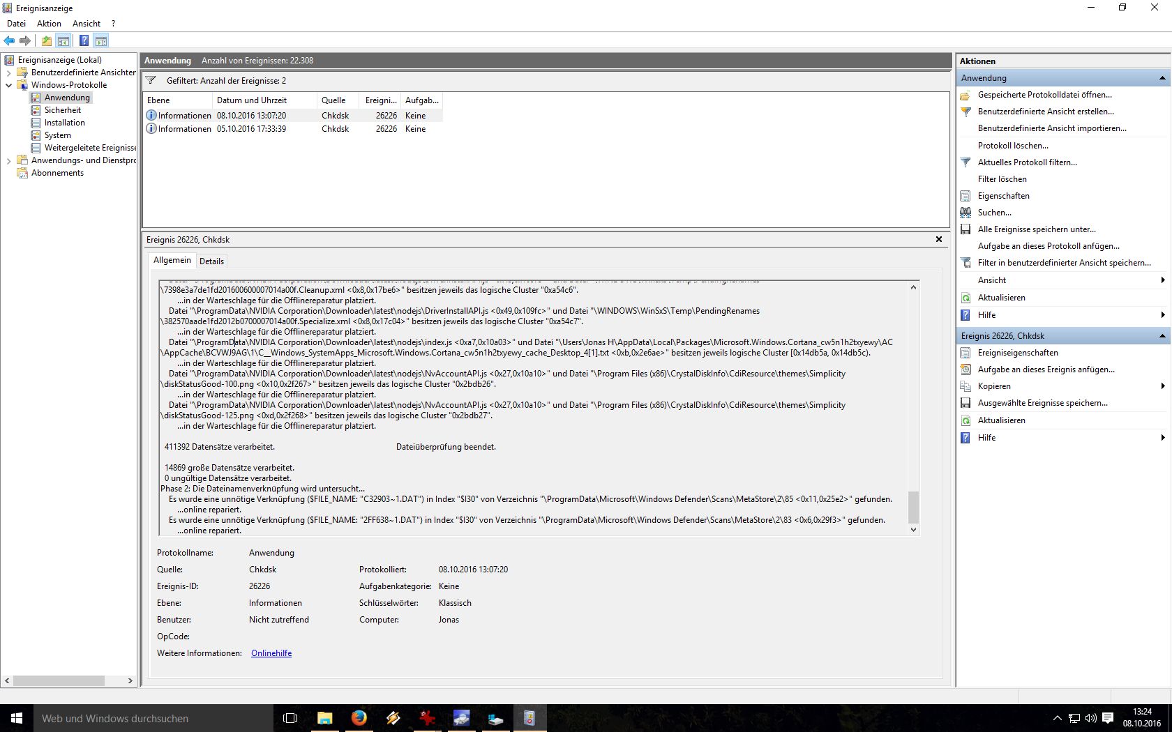 Danach habe ich dann den Windows Defender mal durchlaufen lassen, mit der Fehlermeldung "konnte nicht beendet werden", zudem war auch der Scan sehr langsam, was sich aber gebessert hat, nachdem ich das Inet/Lan-Kabel mal gezogen hatte. Scan ging dann durch, keine Probleme... Rechner aber immer noch langsamer wie normal.