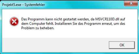 Das Programm "[5692] Projekt5.exe" wurde mit Code -1073741515 (0xc0000135) 'Es wurde keine abhängige DLL gefunden' beendet.