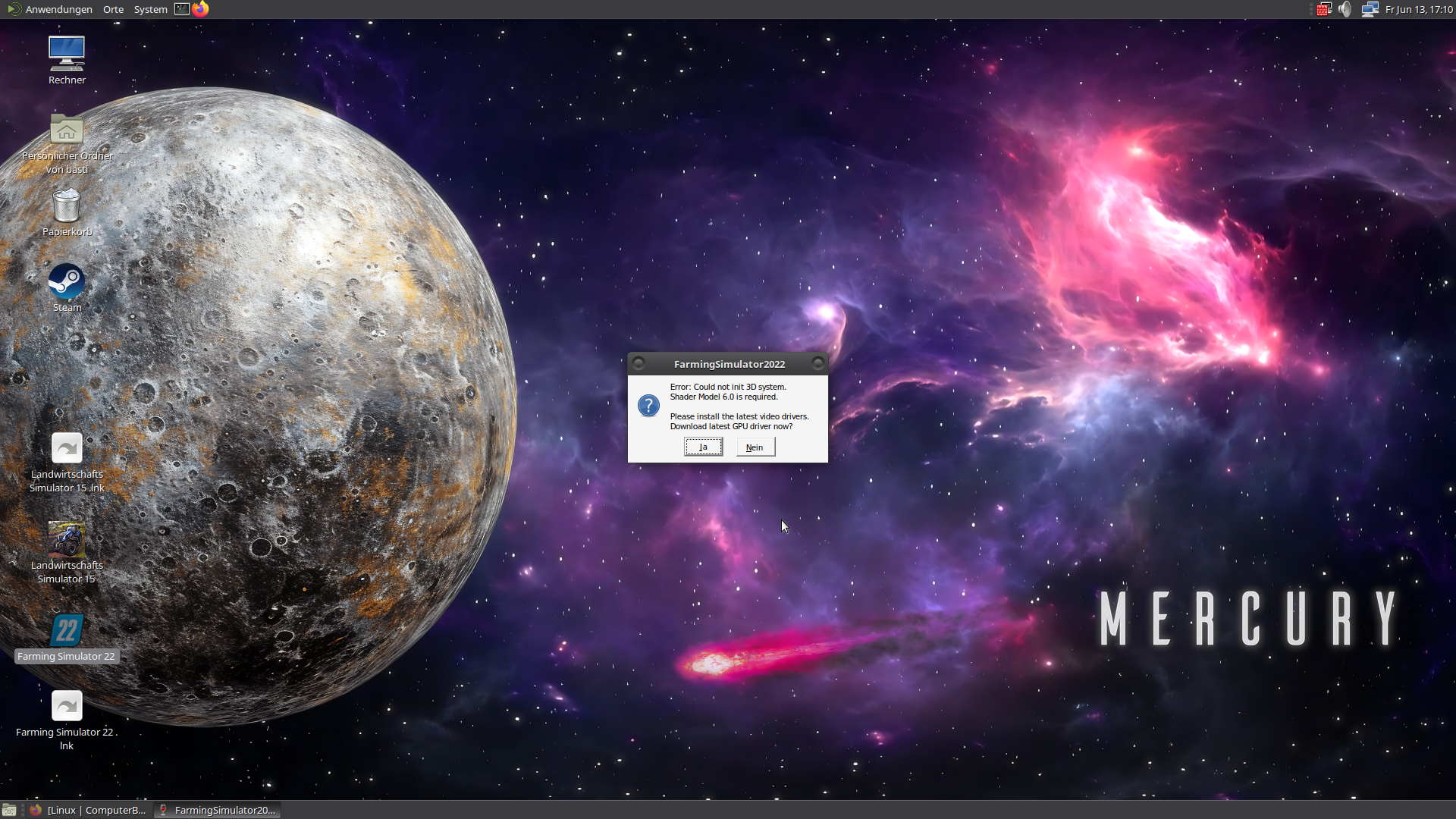 Habe ein etwas älteren PC, habe da EndeavourOS installiert, da mit Wine Farming Simulator 22 installiert, jetzt kommt beim starten die fehlermeldung von Bild, was muss ich da noch installieren?