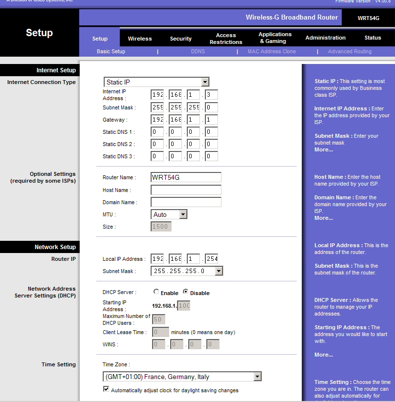 192.168.0.1 - Linksys Router als zentraler Punk in Netzwerk