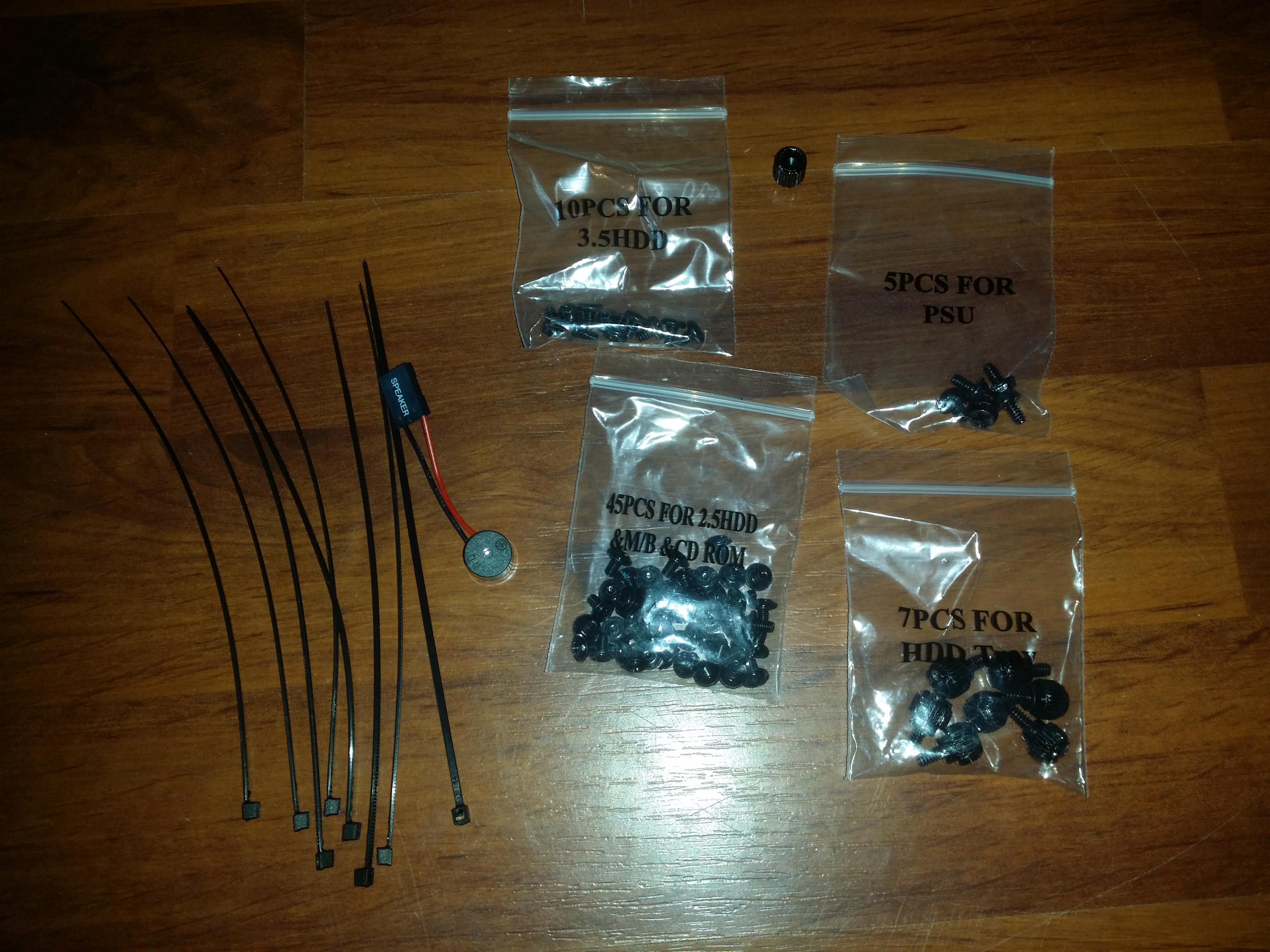 Es werden alle möglichen Schrauben mitgeliefert, die es nur gibt . Dazu kommt ein satz Kabelbinder, über den ich mich sehr gefreut hatte, da ich einen unglaublichen Verschleiß von diesen Dingern habe