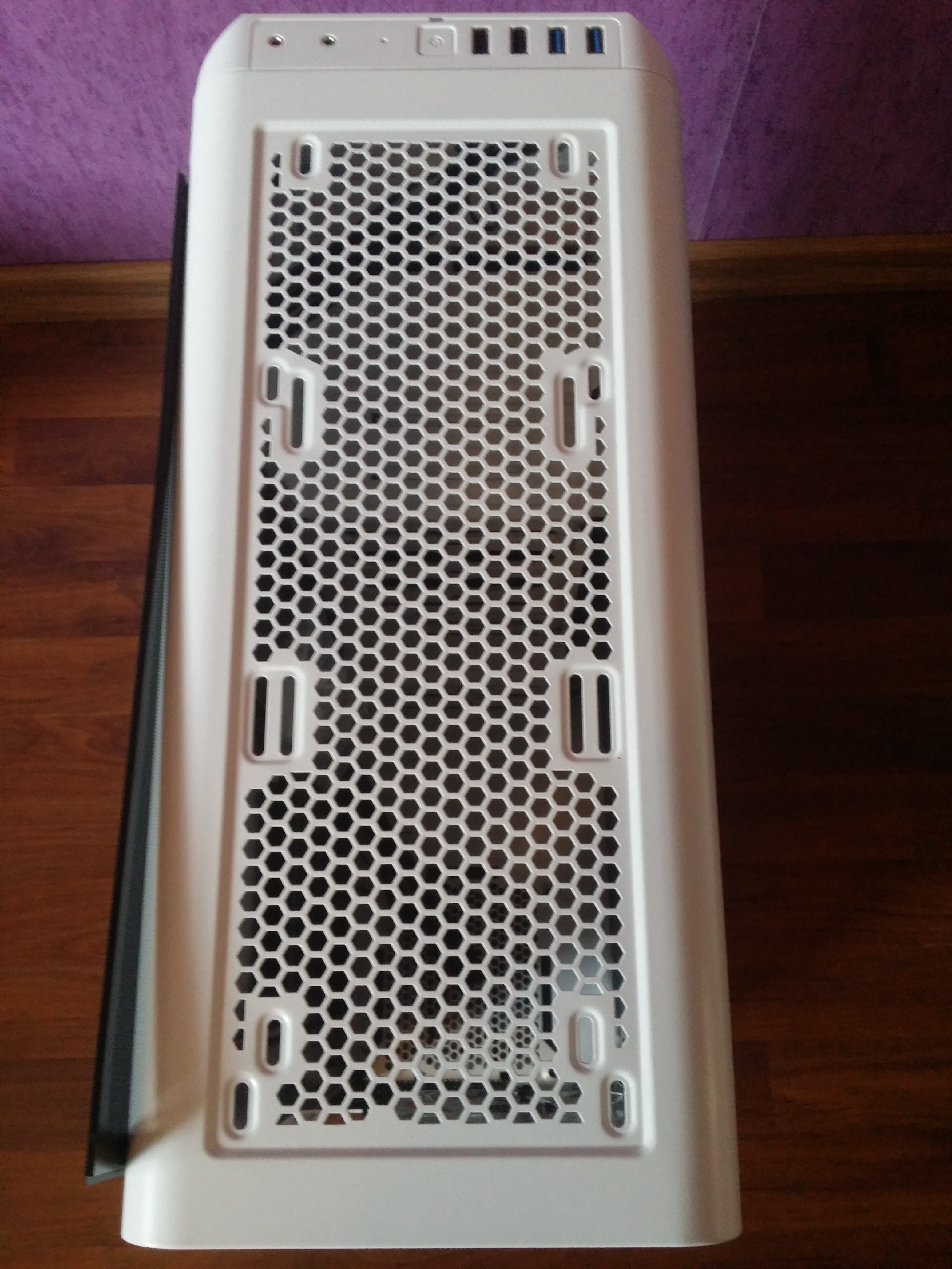 Ich habe das Modell in der weißen Variante mit Fenster und blauem rückseitigem Lüfter bekommen.
