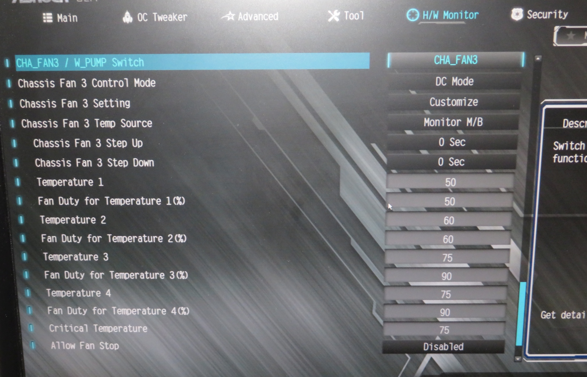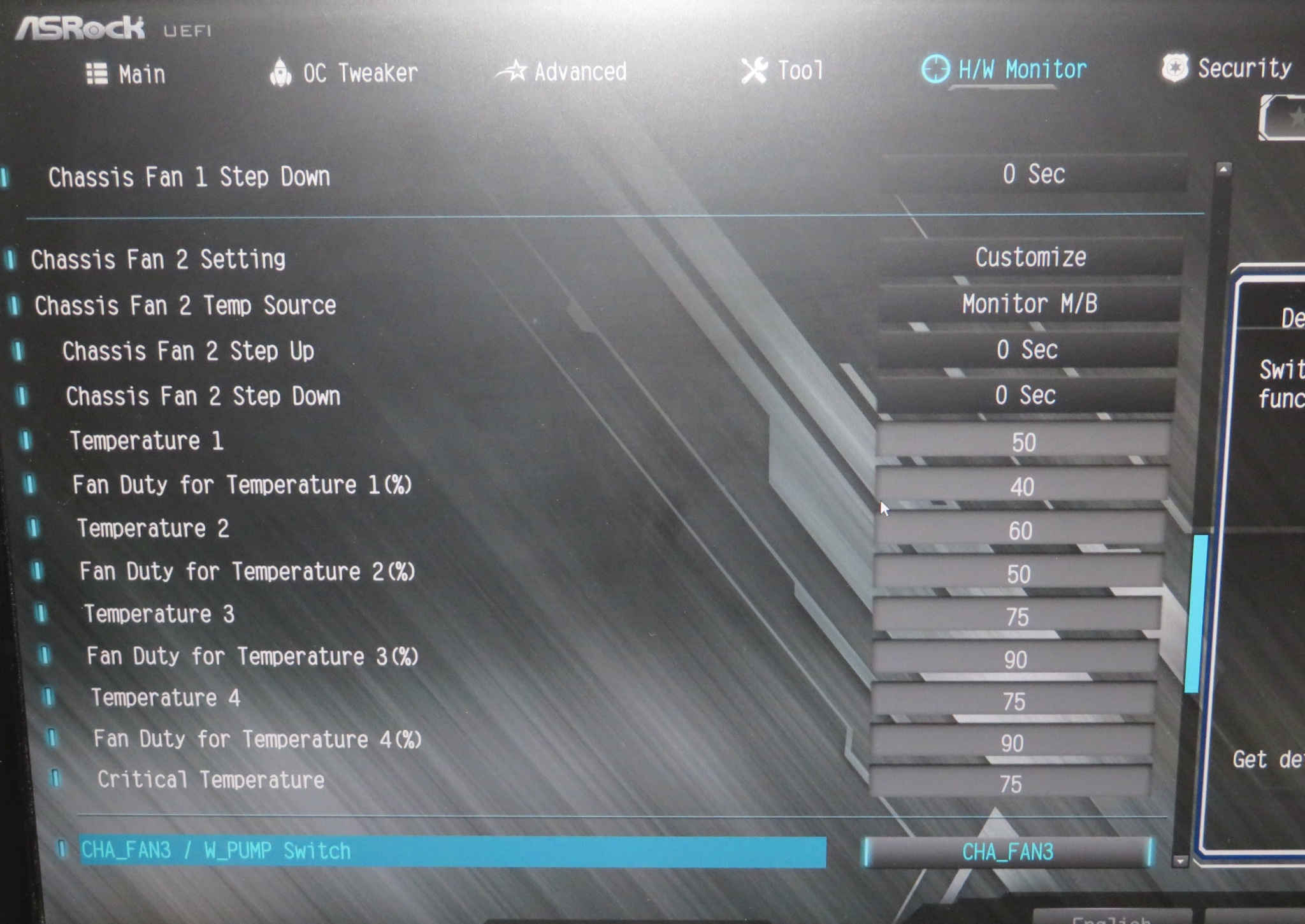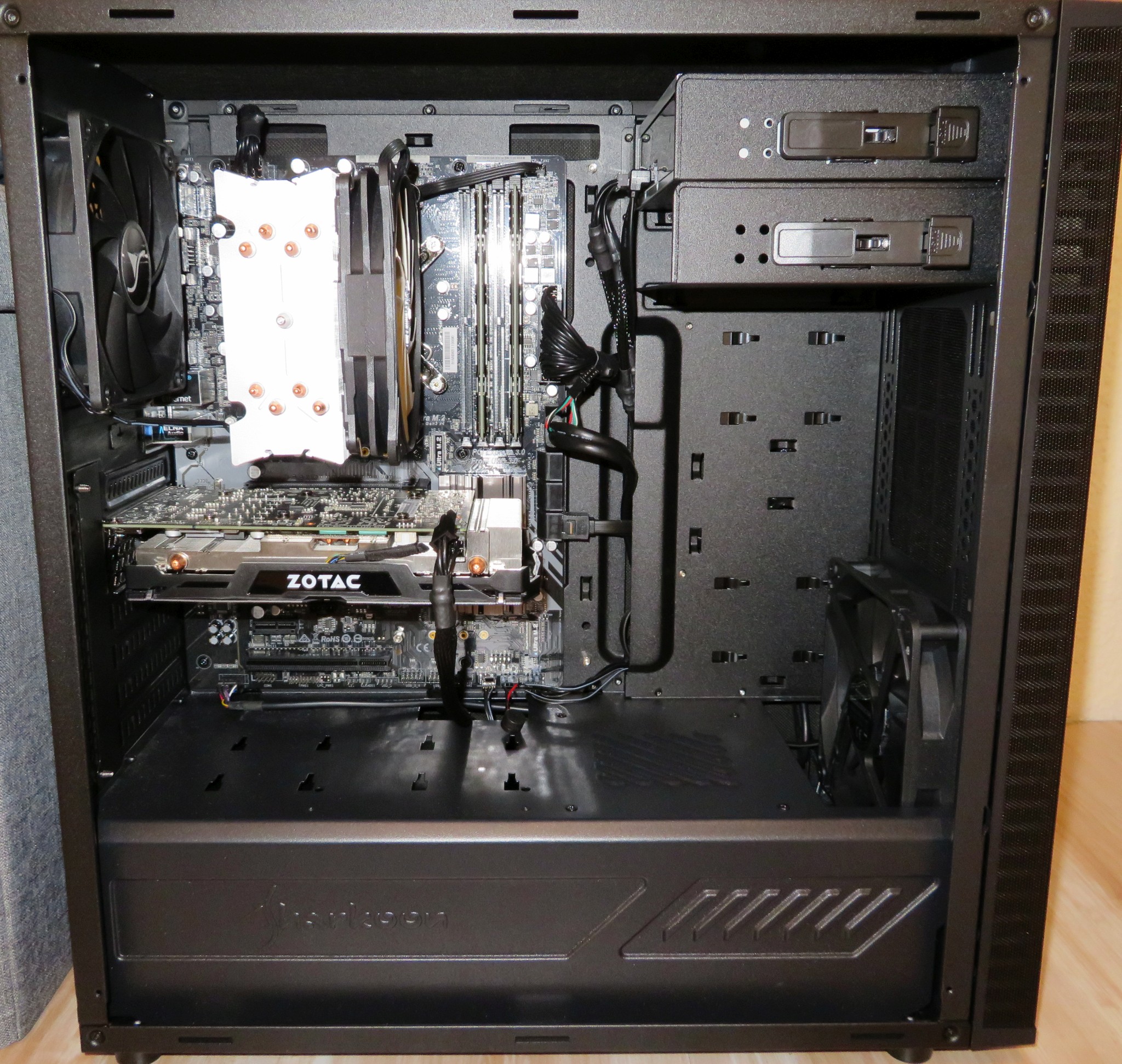 Jedoch stört mich der Frontlüfter etwas - obwohl er leise dreht, ist ein störendes Geräusch zu vernehmen. Wenn ich das Seitenteil vom Gehäuse entferne, ist es aber weg. Dürfte wohl die Luft sein, die vorne eingesogen wird. Im BIOS gibt es die Option, den Frontlüfter komplett abzuschalten, wenn die Temperatur unter der kleinsten Schwelle (hier MB-Temperatur 50 Grad) liegt - habe ich mal aktiviert, womit jetzt wirklich Ruhe ist.
