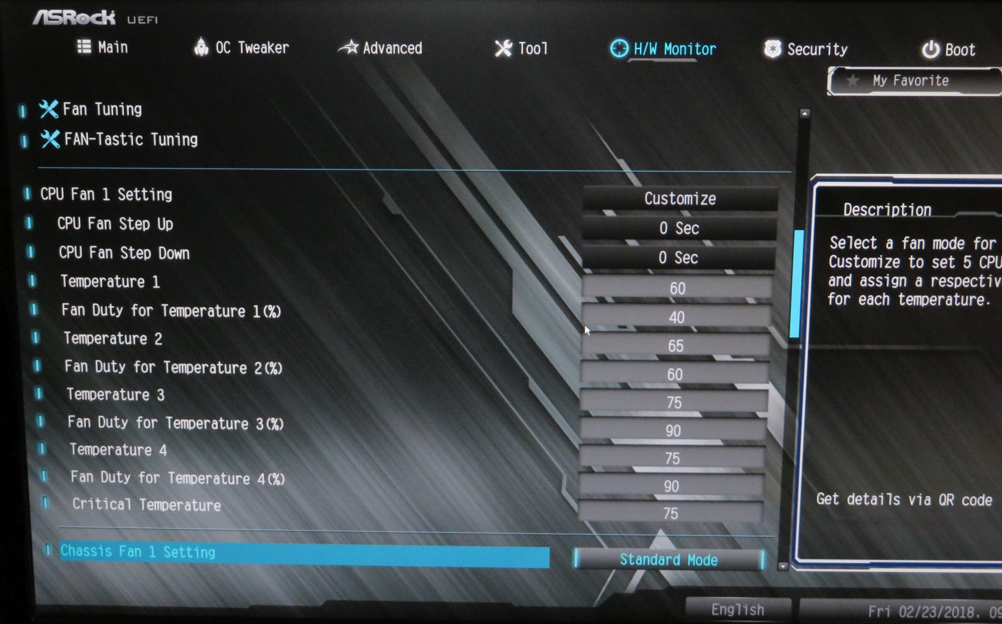 Um das ganze im Normalbetrieb möglichst leise zu bekommen, habe ich auf eine HDD verzichtet und per Lüftersteuerung im BIOS folgende Werte eingestellt: