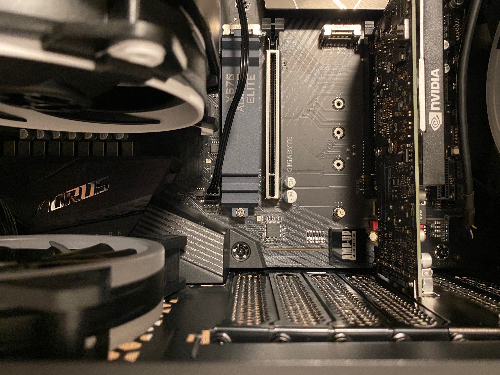 Ich habe mir das Sharkoon pure steel RGB gekauft. Mainboard ist Gigabyte X570 AORUS ELITE ATX Mainboard Sockel AM4.
