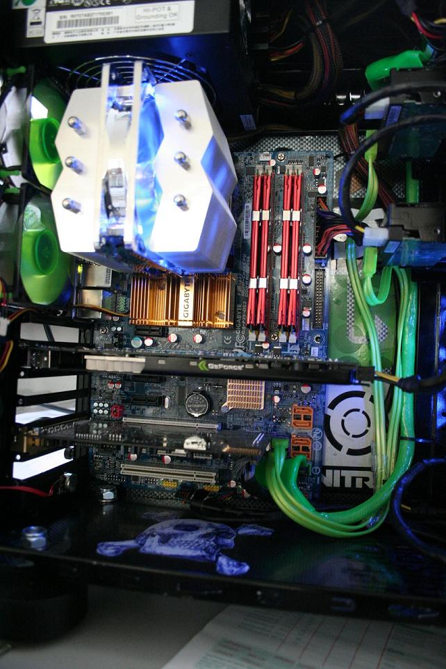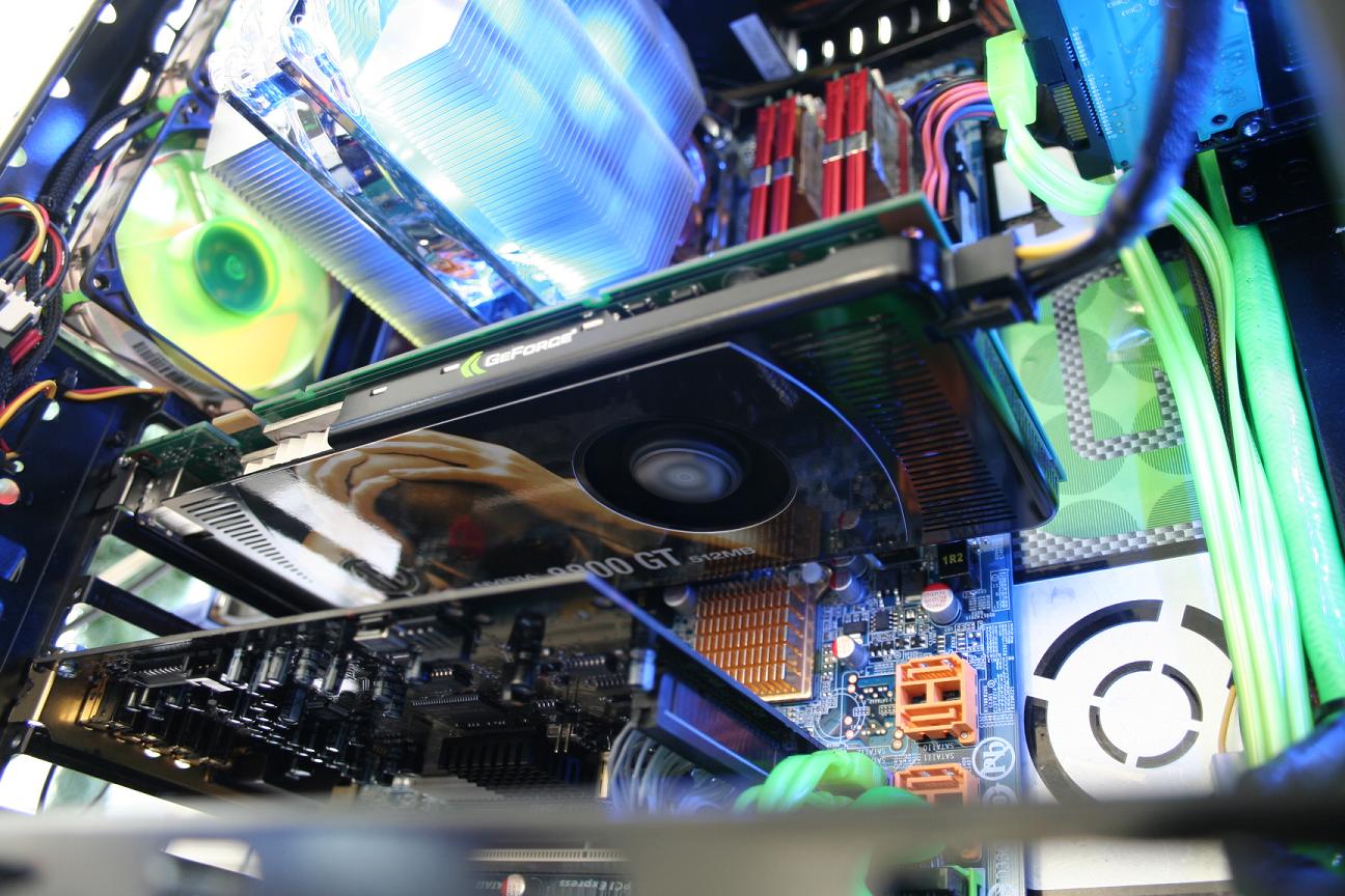 wie süß die 8800gt aussieht. war mir im klaren darüber, dass sie nur ihren eigenen slot verbraucht, aber hab sie noch nie in einem geschlossenem system gesehn...