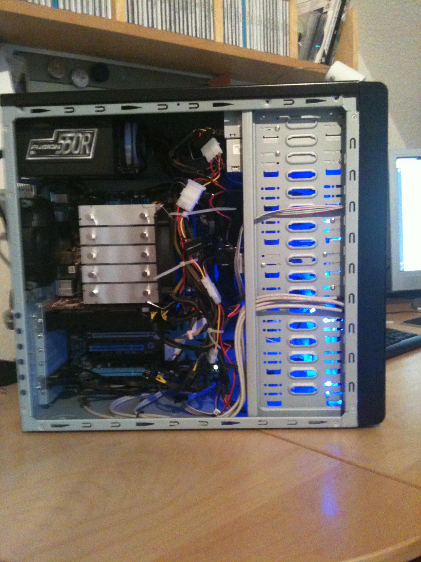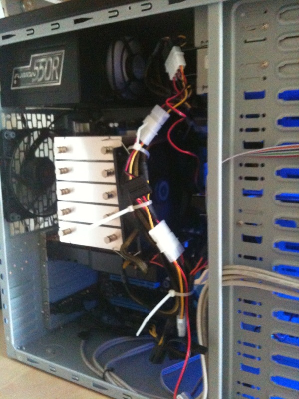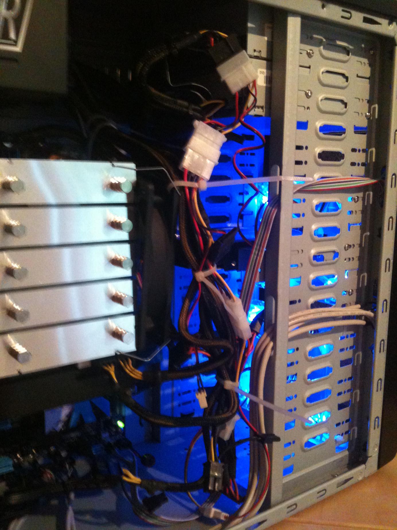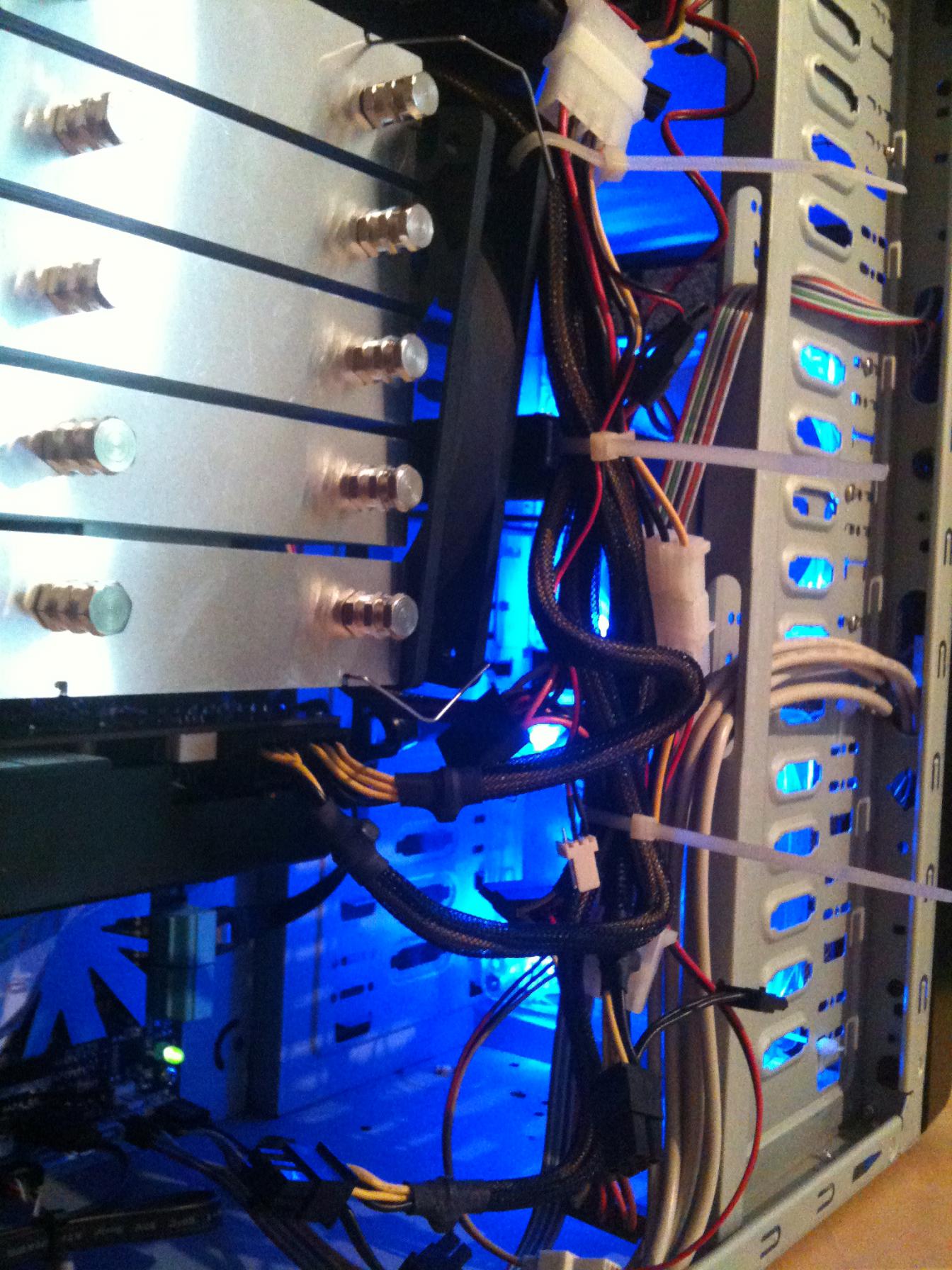 vllt nicht die eleganteste lösung, aber es führen alle kabel an den lüftern vorbei, und nix steht im weg!