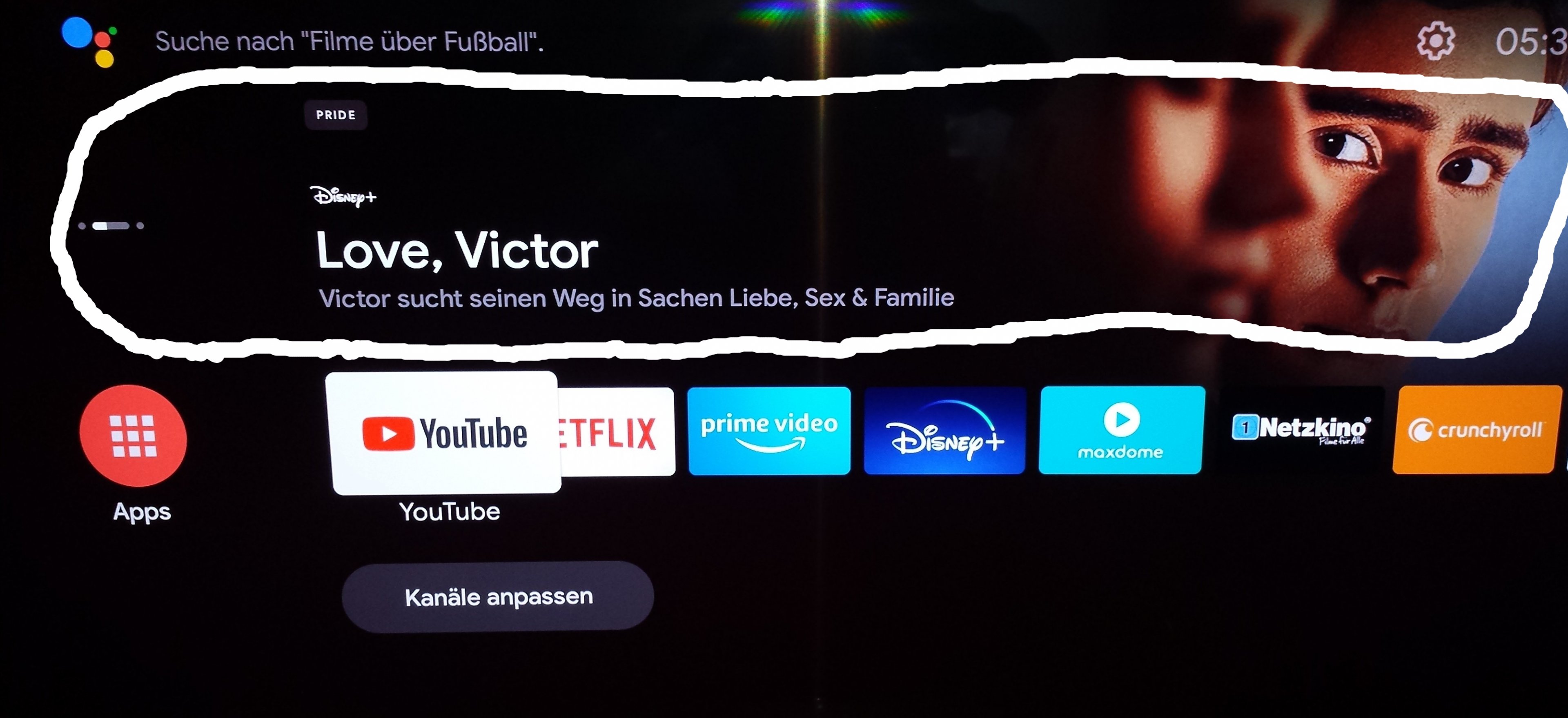 scheinbar wurde ein neuer Android TV Startbildschirm auf der Shield verteilt mit einer Highlights Anzeige von Streaming Apps. Oberhalb der Apps, die unterhalb angezeigt werden.