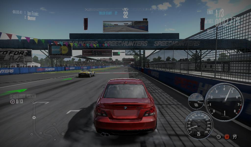 Sonst habe ich es einmal mit der Tastatur einmal mit meinem Logitech Driving Force GT und einmal mit dem XBOX 360 Gamepad angezockt.