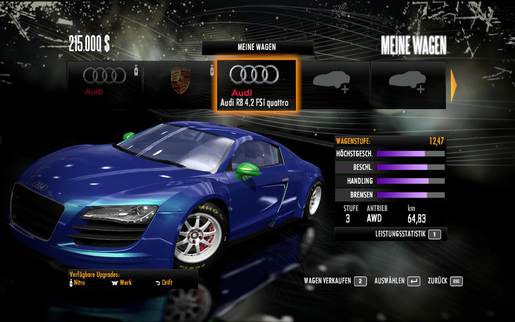 So hier mal mein Audi R8. Bin noch nicht all zu weit im Spiel gekommen...