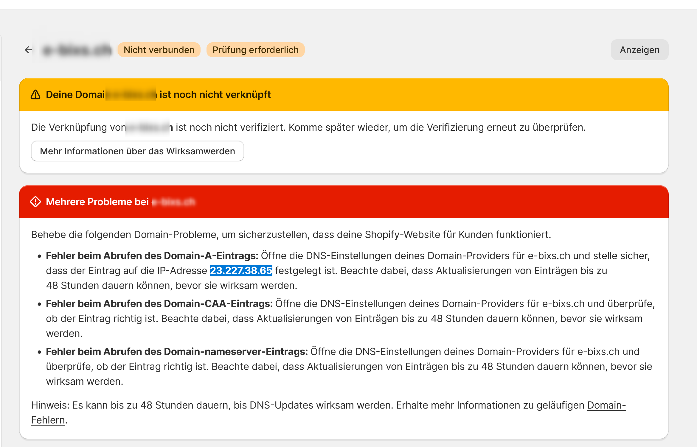 Nun habe ich bei Registrar die IP Adresse 23.227.38.65 und den Hostname eingetragen. Da werden aber min 2 DNS einträge gefordert und Shopify gibt nur einen an.