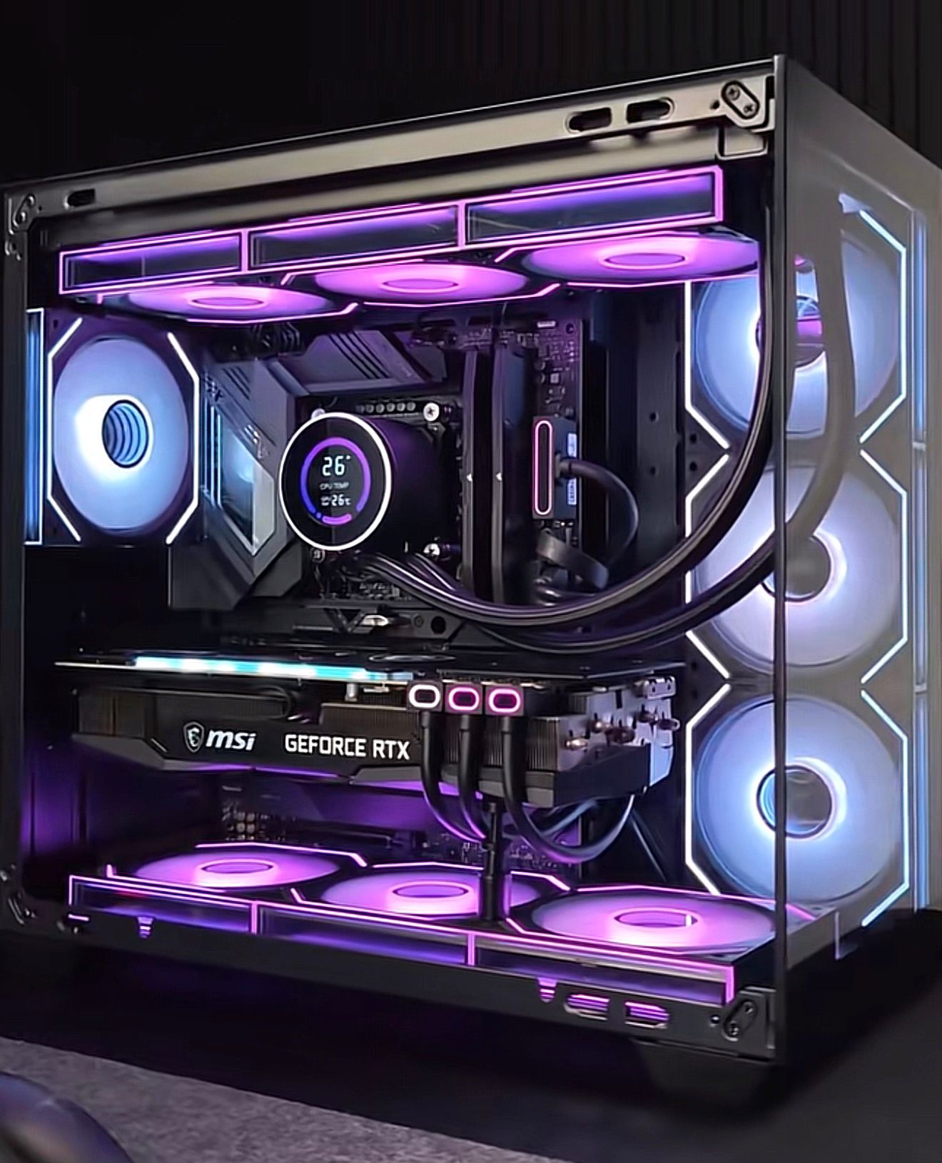 - Welche AIO + Lüfter-Serie passt optisch am besten zu diesem “Edge/Frame-Lighting” Look, ohne Kabelchaos?