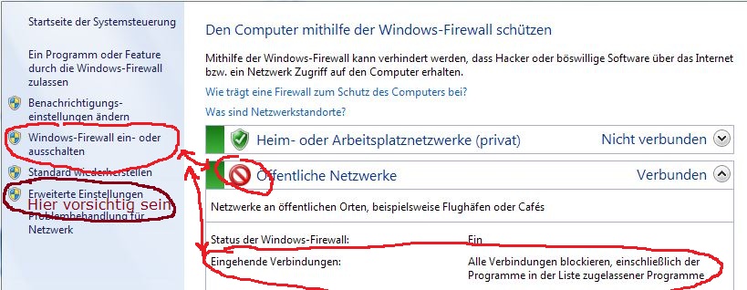Wenn in den erweiterten Einstellungen keine falschen Einstellungen gemacht werden, dann kann mit dem öffentlichen Profil und eingehende Verbindungen blockieren der PC komplett von der Außenwelt "abgedichtet" werden.