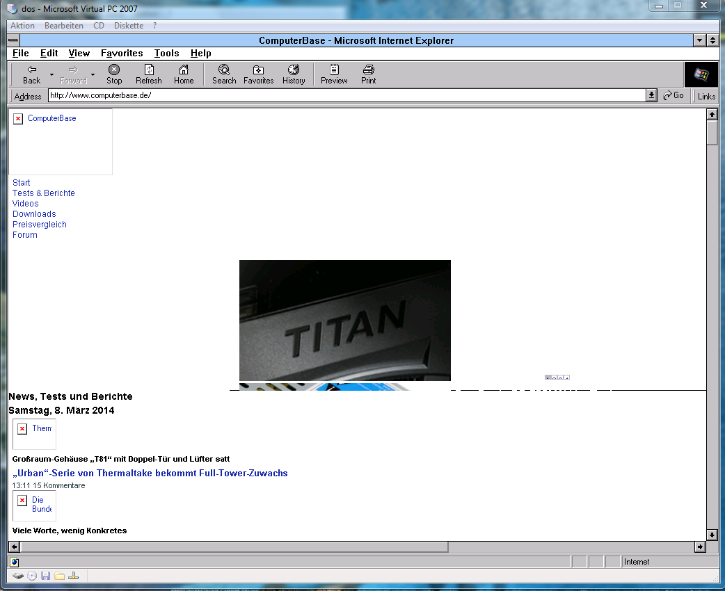 aus Jux und Tollerei habe ich mal meine alte Dos622+Win 3.11 vhd angeworfen und in Virtual PC ins Internet gebracht.