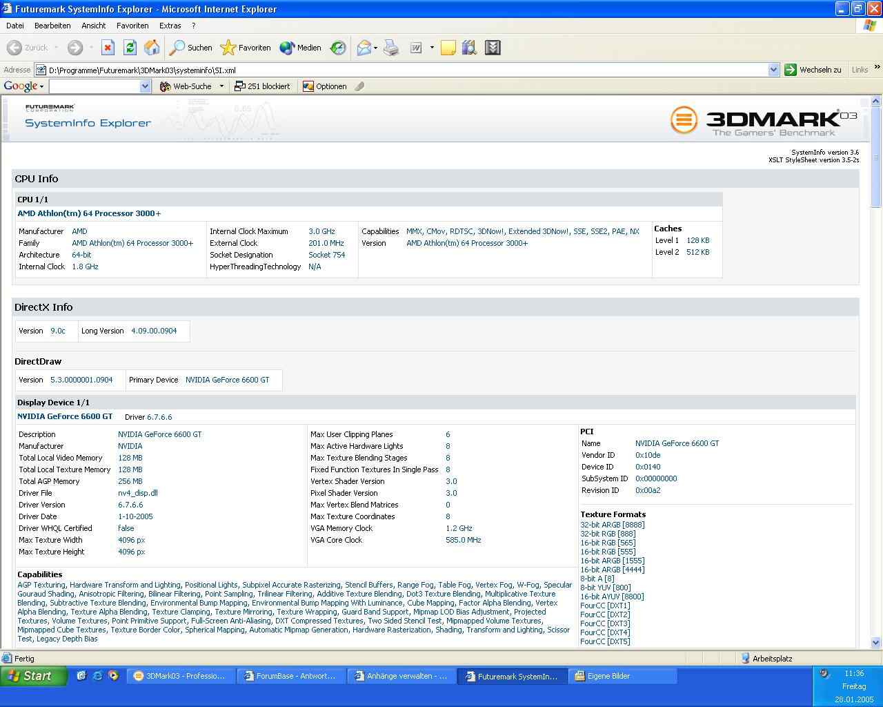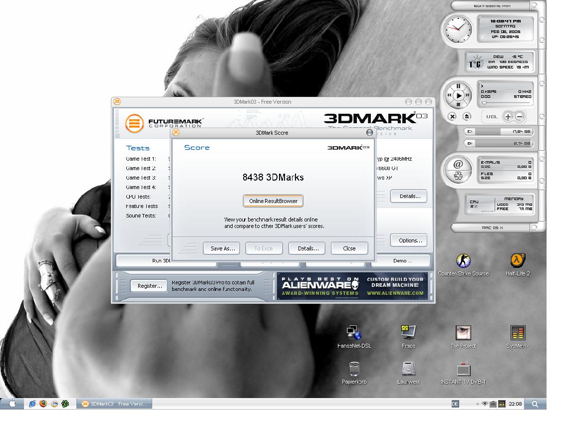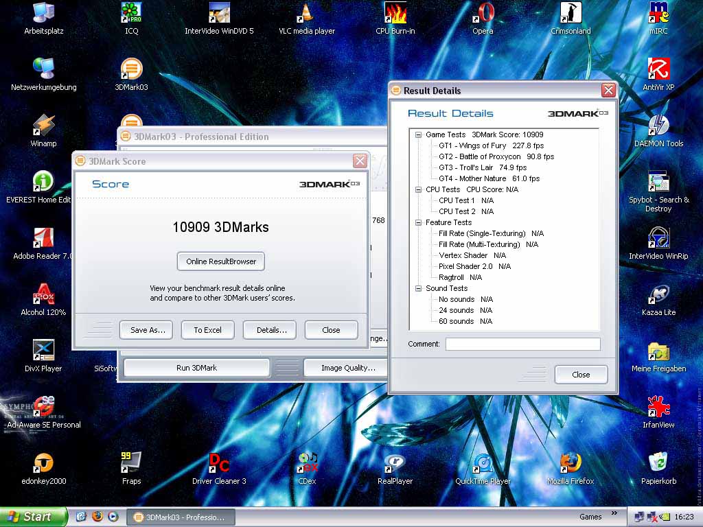 @MrHunter oh das sind ja so viele punkte mehr. Ich hab eine 6800gt@2600+ und 10356 Punkte. Was hier wohl bremst *g* Man sollte die Leistung nicht mit dem 3dmark 03 oder 05 Testen das bringt überhaupt nix. Eine schnellere CPU bringt aber schon was bei den Games.