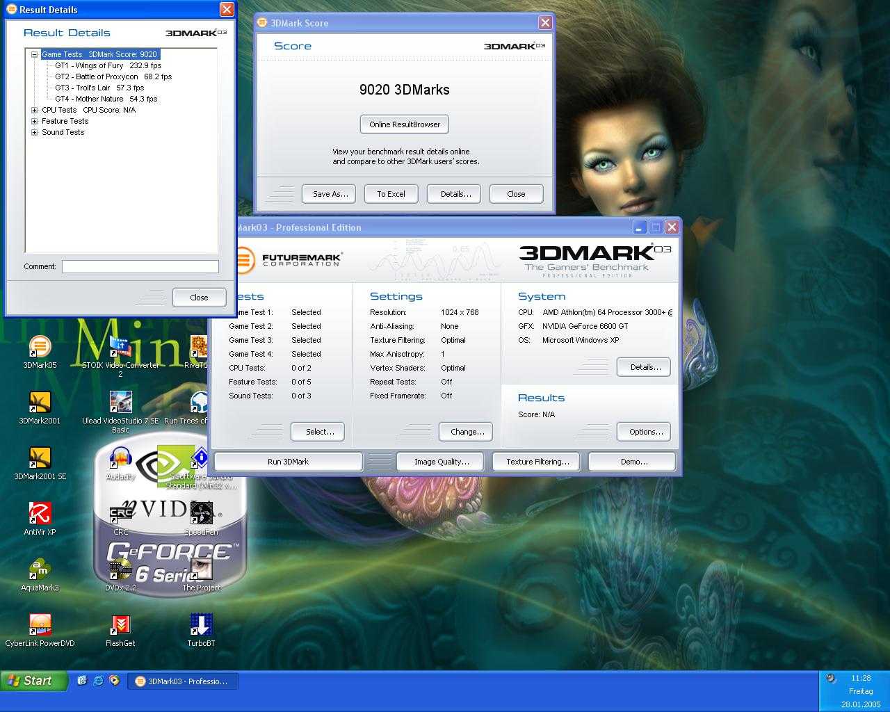 Mit meinem AMD XP2800+@3300+ erreiche ich mit der gleichen 6600GT ~7500Punkte!