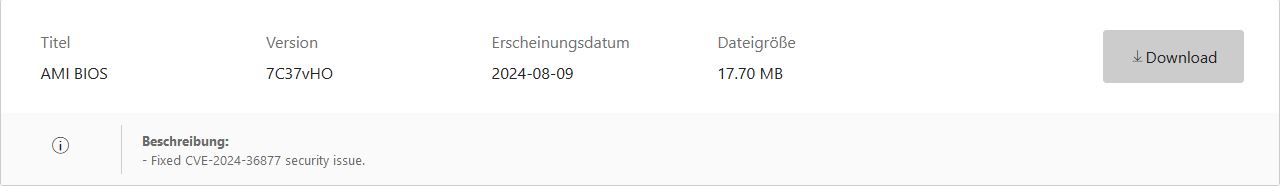 @Gouvi AMD hat das ComboAM5PI 1.2.0.1 am 07.08.2024 für die Mainboardhersteller fertiggestellt. Wenn ein entsprechenden BIOS- / UEFI-Update für dein Mainboard veröffentlicht wurde, kannst du auf deinem Rechner den Fix installieren.