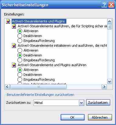 Kann die Sicherheitsstufe vom IE 6.0 nicht niedriger als auf mittel stellen. Es kommt manchmal die Meldung dass die empfohlene Stufe mittel ist und nicht geändert werden kann.