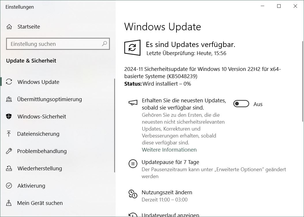 Ansonsten ist das Update nur noch am 13.11.2024 einmal erfolgreich installiert worden. (Updateverlauf anzeigen)