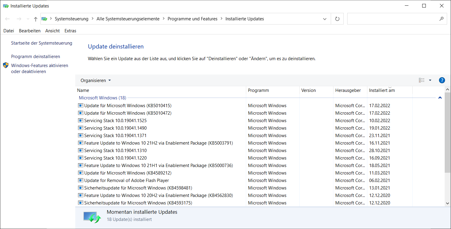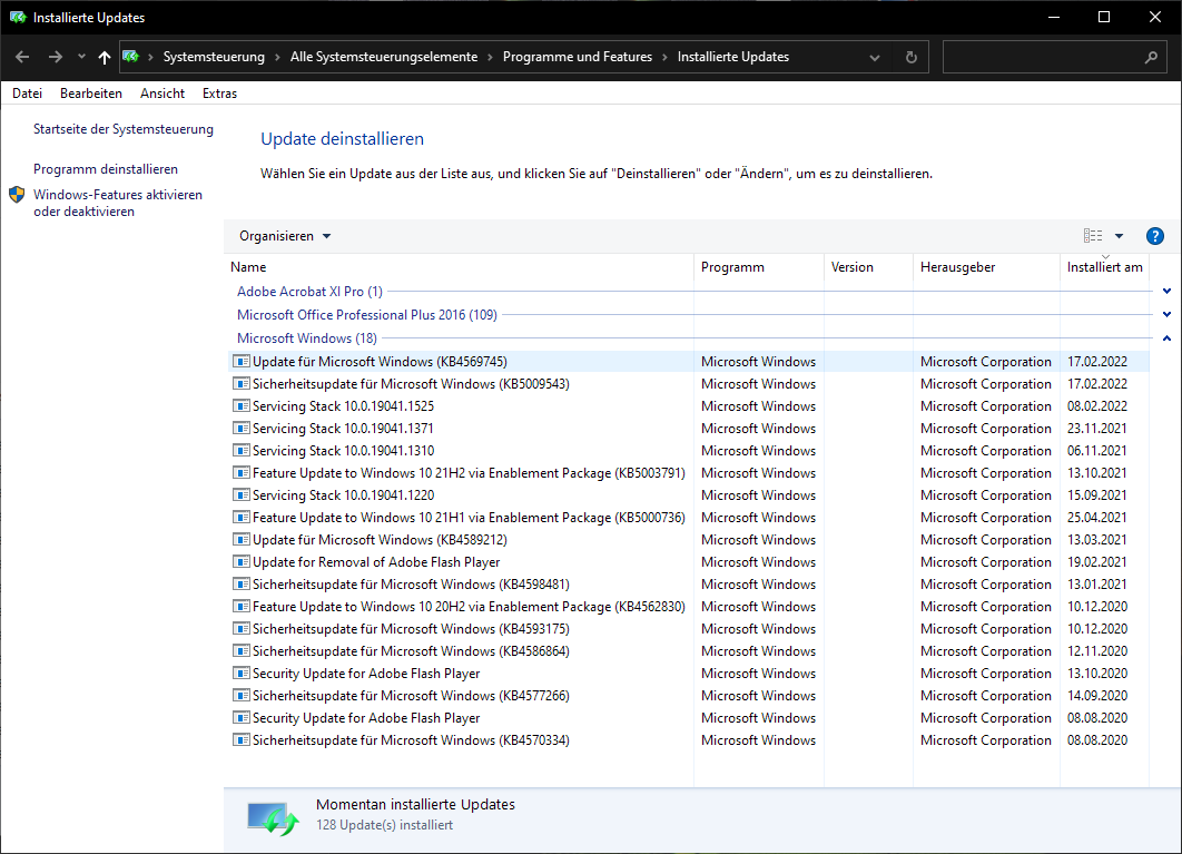 - Alle Updatedateien mittels Datenträgerbereinigung gelöscht