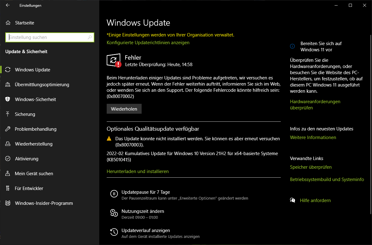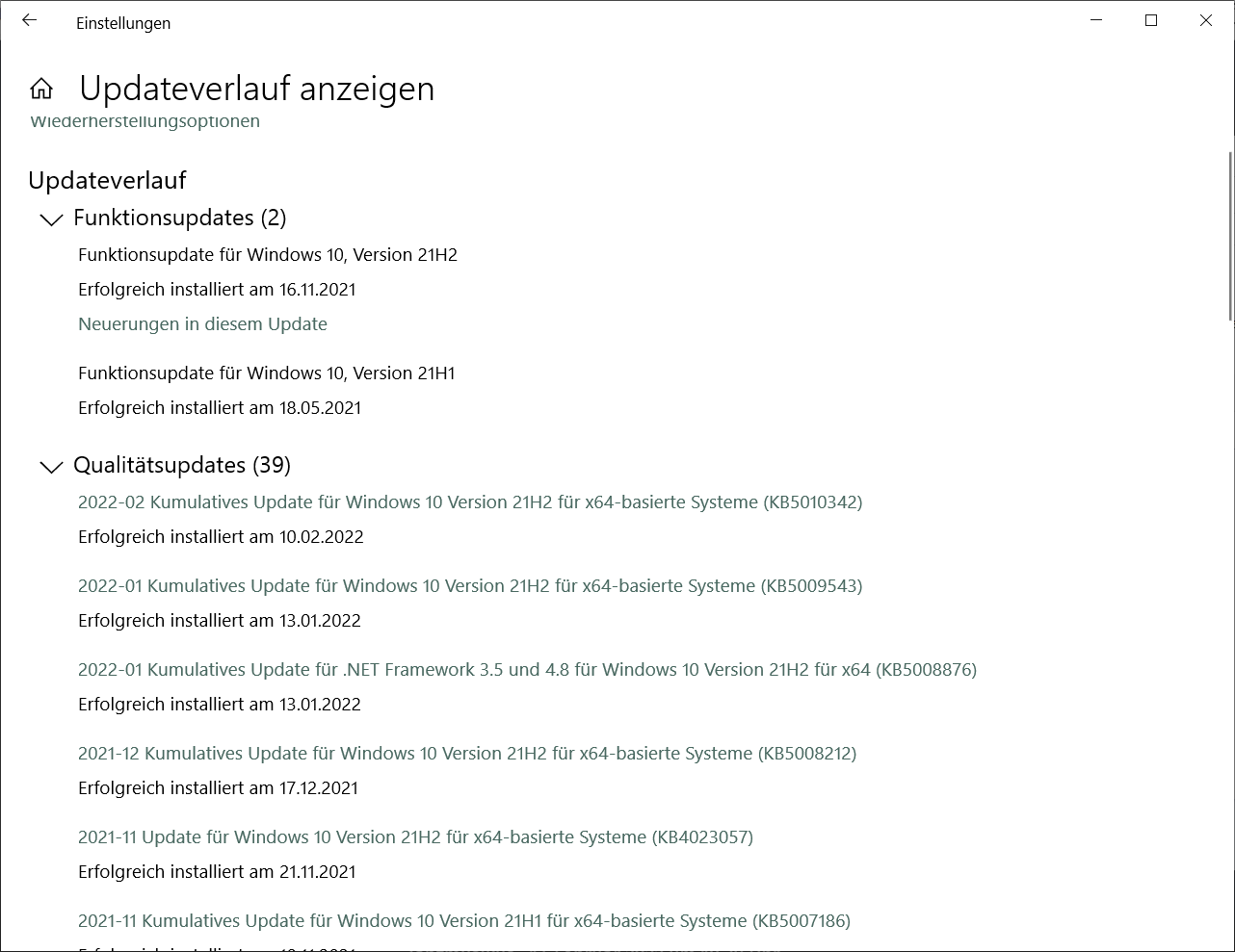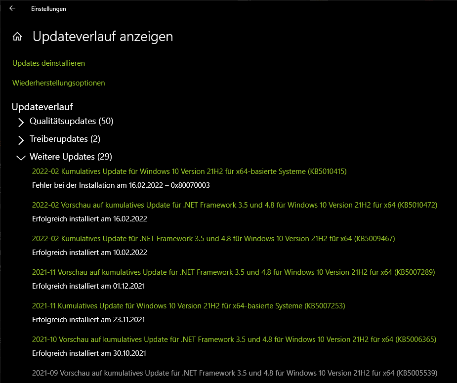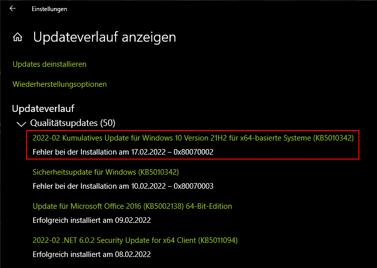 ich bekomme das Windows Update KB5010342 auf dem Desktop-PC nicht installiert.