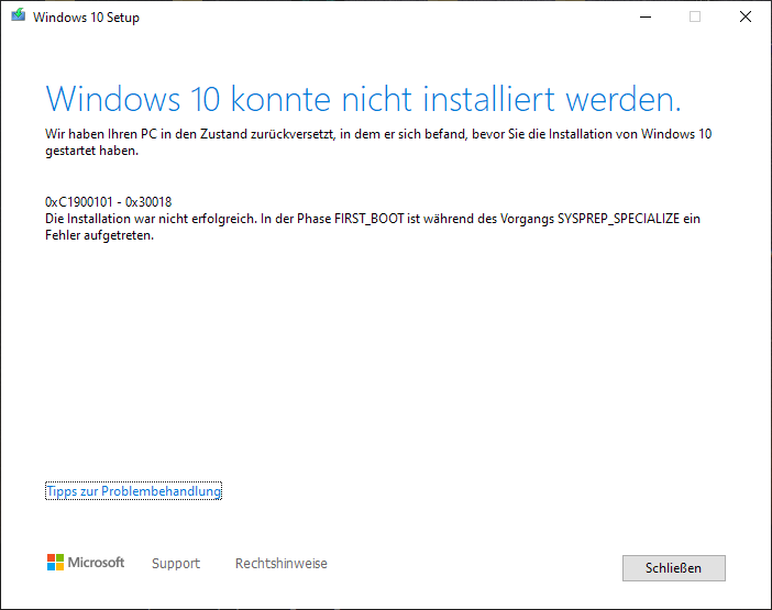 Es bricht immer nach 6% ab & das Update wird zurück gerollt.