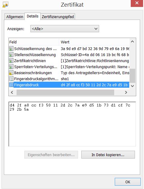 -das Telekom Root CA Zertifikat habe ich installiert