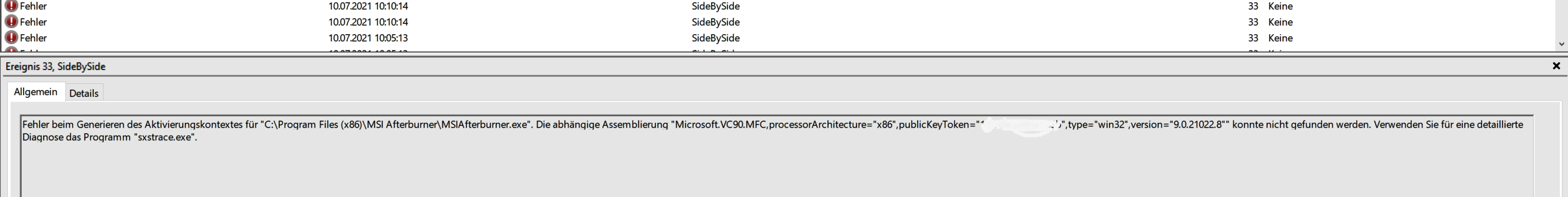 Die anderen Anwendungen/Software-/s laufen wieder einwandfrei, nur der Afterburner plötzlich nicht mehr.