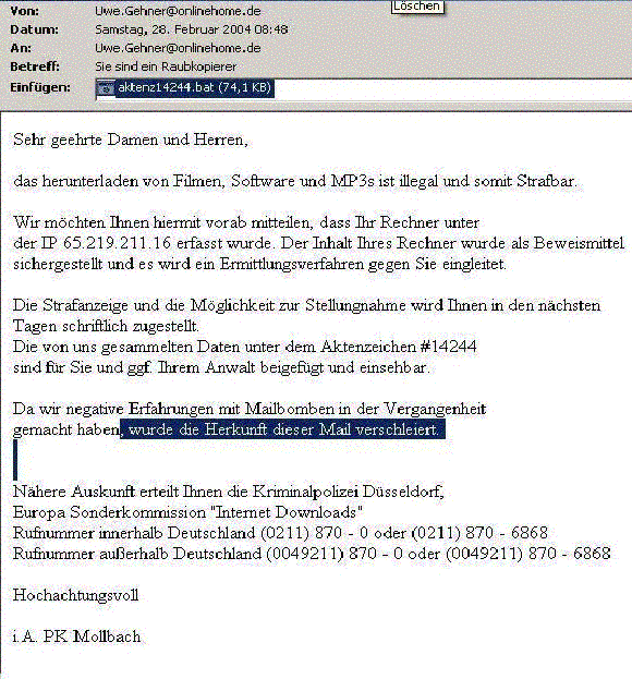Re: "Sie sind ein Raubkopierer" eMail Virus,VORSICHT !!