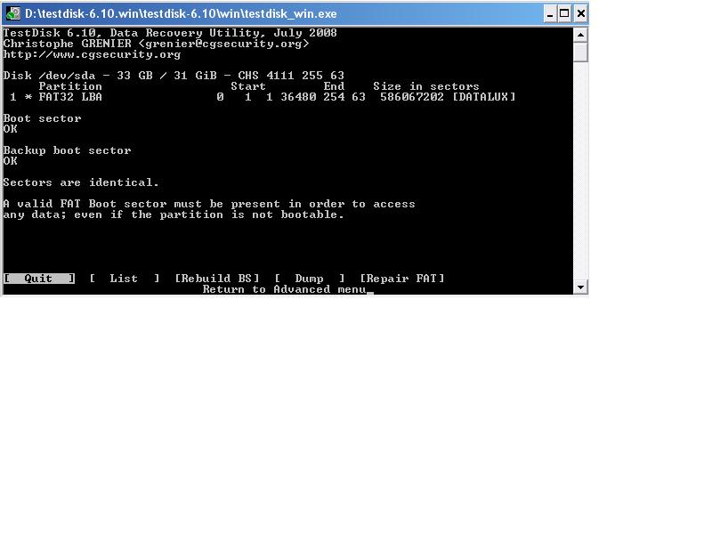 Die Platte wird nach jedem Neustart unter Testdisk als 30 GB Platte angezeigt. Geometrie habe ich verändert (Cylinders auf 36480). Leider kommt es dann bei einer Analyse zu Read Errors at..... genau an der Stelle, wo vorher die Cylinderanzahl stand (4111).