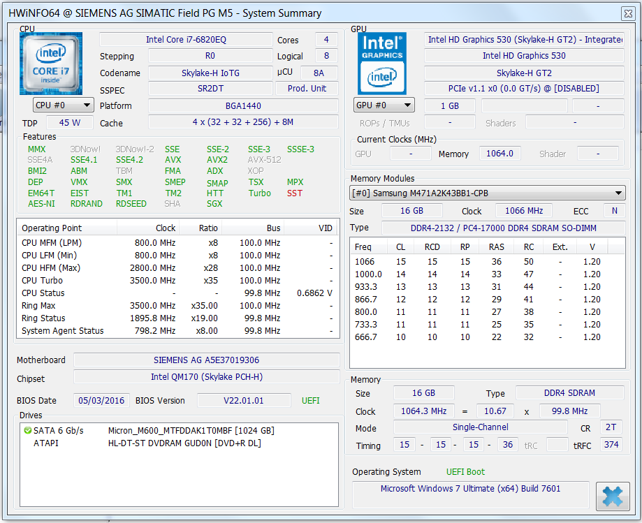 Betriebssystem: Windows 7 Ultimate Embeded 64 bit SP1