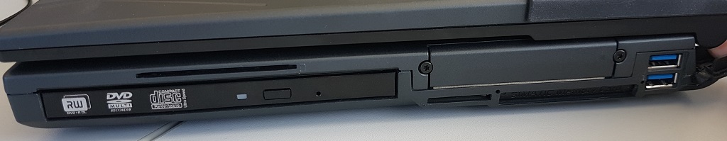 Rechts: 2x USB 3.0, Einschubfach für die Festplatte, S7 Speichermodul-Prommer, SD XC Cardreader, Smart-Card, DVD-Laufwerk.