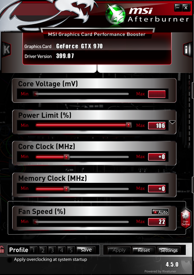 Die Stromzufuhr der Karte auf Max. stellen (bei mir 106%). Hat nichts gebracht.