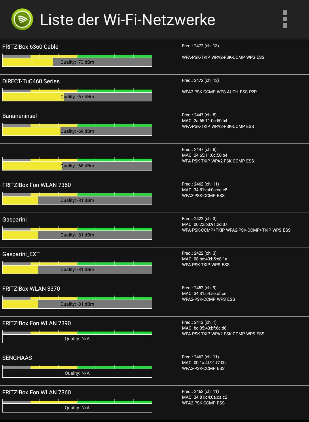 Beim Rest handelt es sich um die W-Lan Signale der Nachbarn - diese sollten alle weit genug auseinander liegen vom Kanal her.