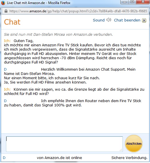 Ich habe mit meinem Handy über eine App die Signalstärke gemessen. Hinterm TV Gerät dort wo der Stick angebracht wird herrschen laut App -65-72 dBm Dämpfung.