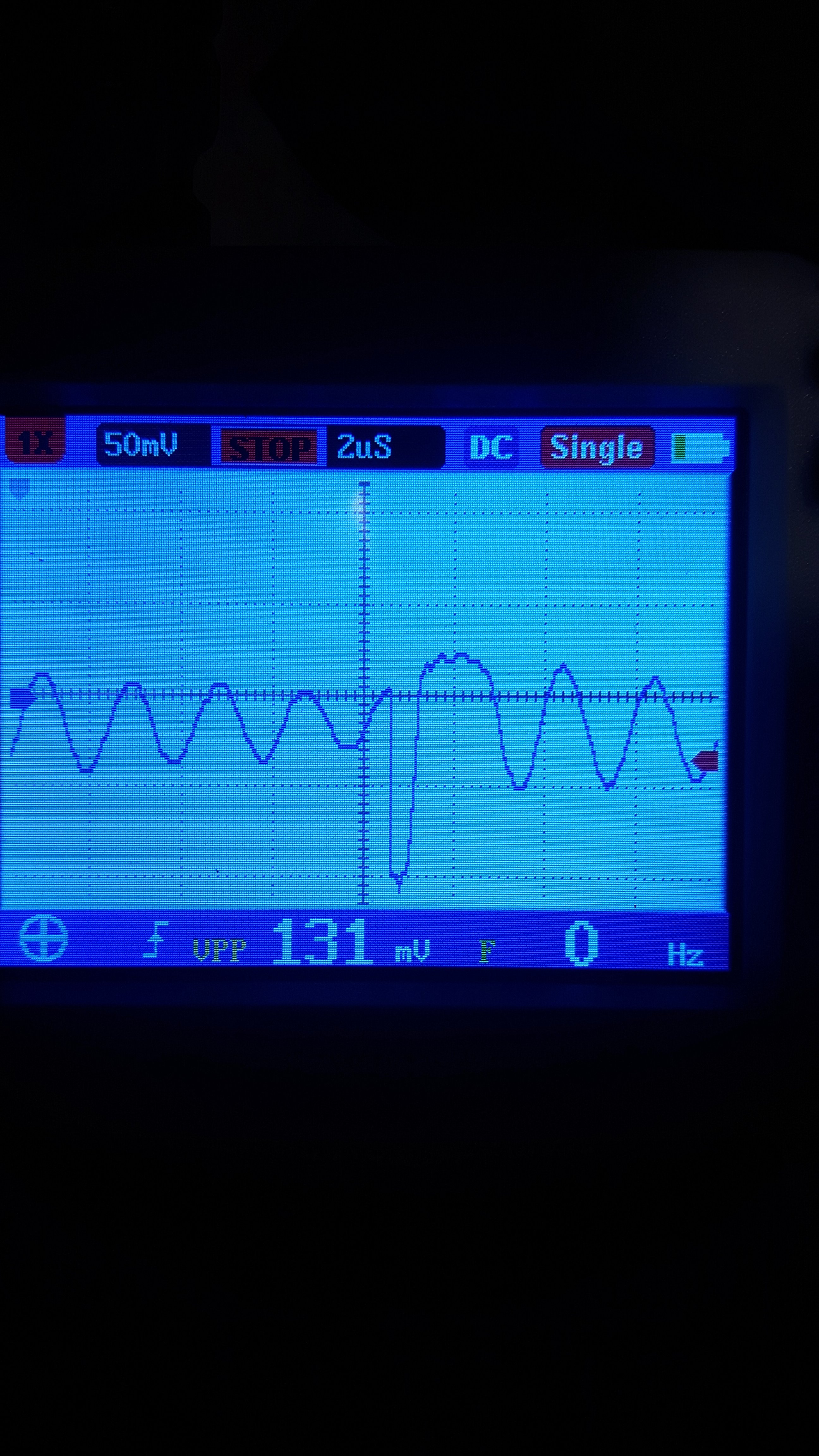 Wie gesagt, dein Analogwertdoppler wird die Spannung, die du verwendest nicht können. Auf dem Oszi-Bild sieht man eindeutig, das du 50mV/Div eingestellt hat - also passen die ~130mV zumindest laut deinem Bild schon.