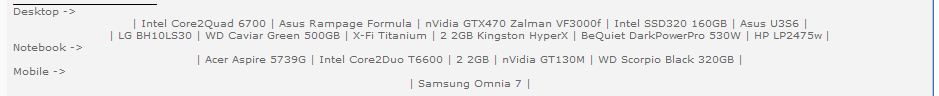 Ich bastel gerade an meiner Signatur rum und wie man sieht, sind die Linksbündigen Überschriften in einer anderen Zeile, als der zentrierte Text.