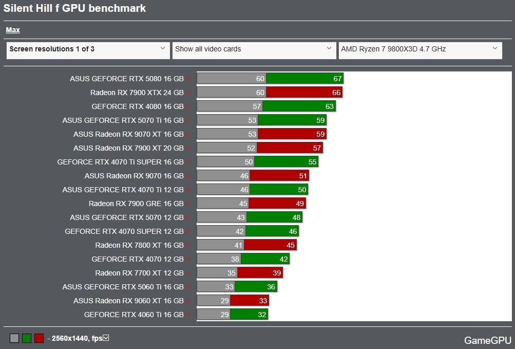Im Falle von Silent Hill f bedeutet dies: DLSS 4 sowie FSR 4 laufen auf entsprechenden Grafikkarten im Quality-Modus (Skalierungsfaktor 1.5×), während ältere Radeons mit TAA Native laufen (Skalierungsfaktor 1.0×). Da das Spiel XeSS nicht unterstützt, wird auch bei den Arc-GPUs auf TAA Native gesetzt.