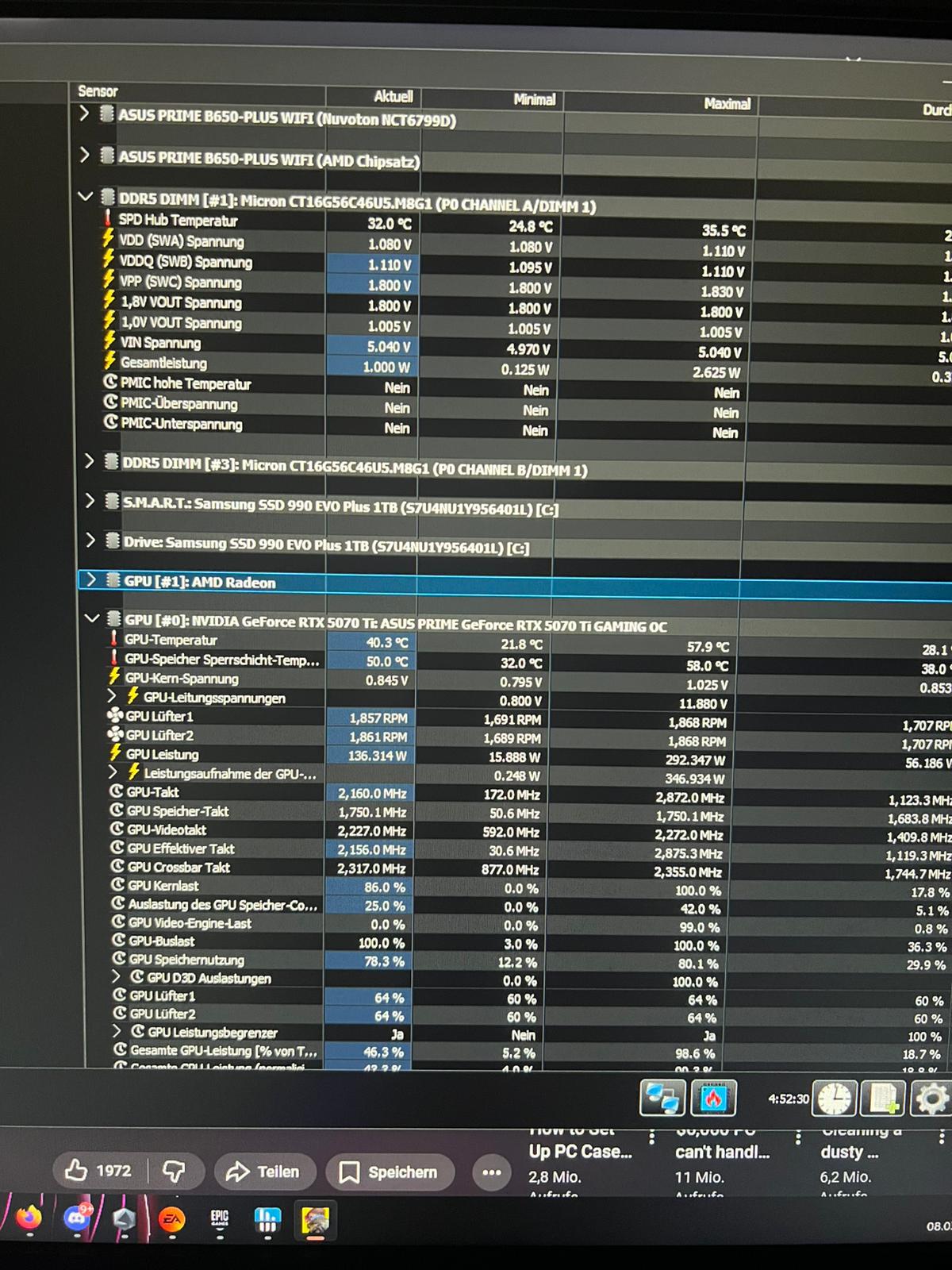 - Temperaturen: 40–46°C GPU | 50°C VRAM
