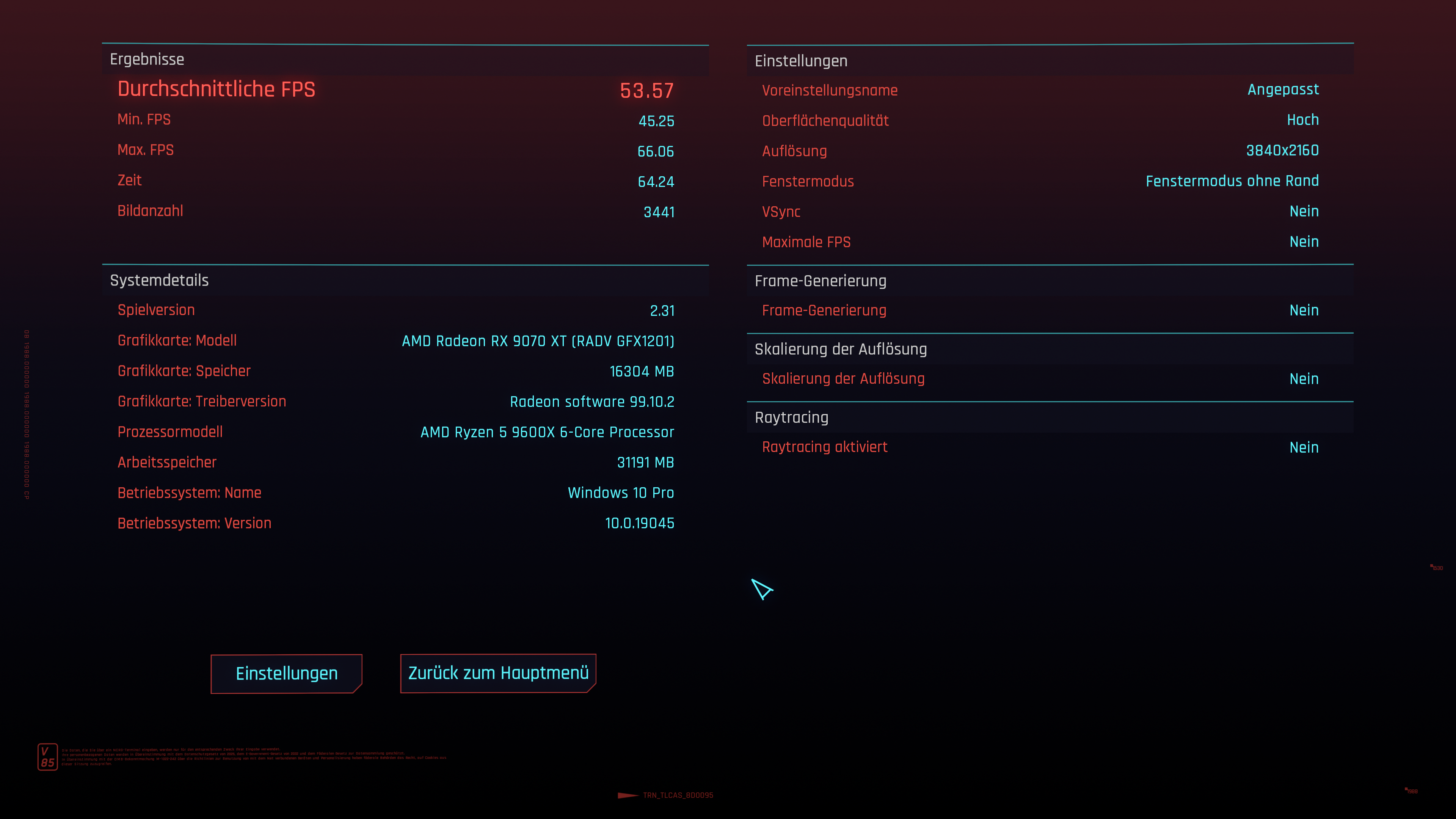 Für mich ist die niedrige CPU-Auslastung auffällig wenn du FG und DLSS deaktivierst. Ausserdem zieht die im Schnitt auch nur 50w und nicht über 80w wie es eher sein sollte.