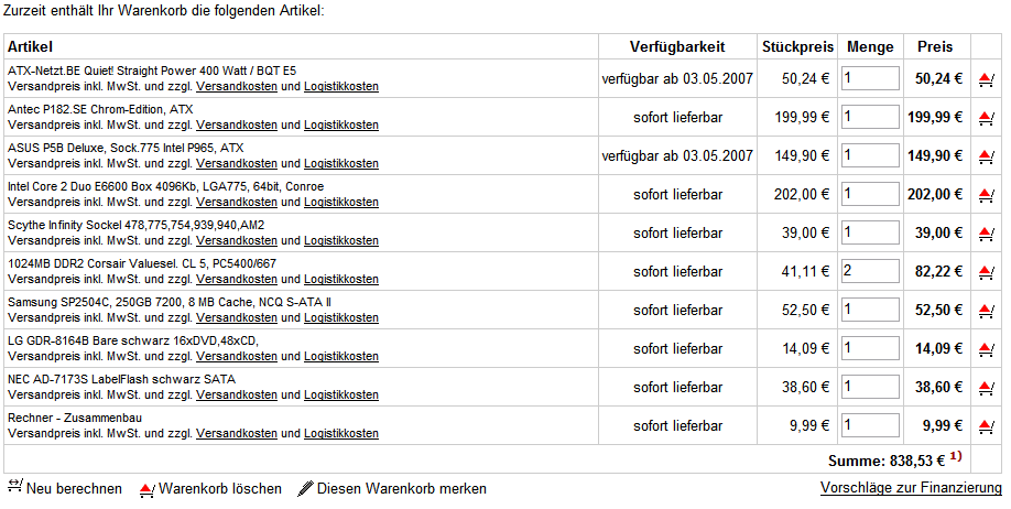 z.B. BE Quiet 400W = 50€